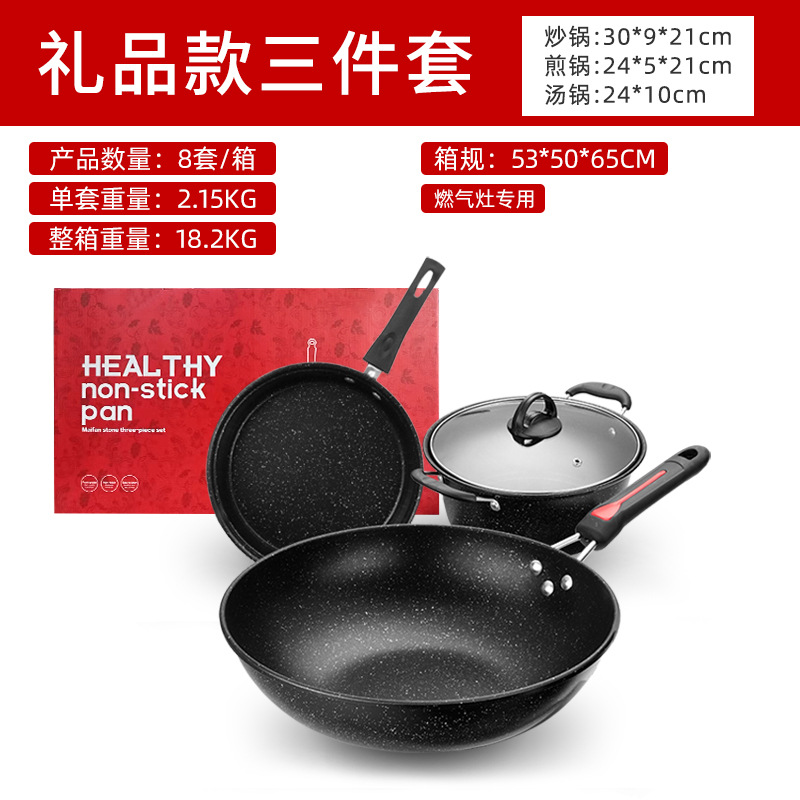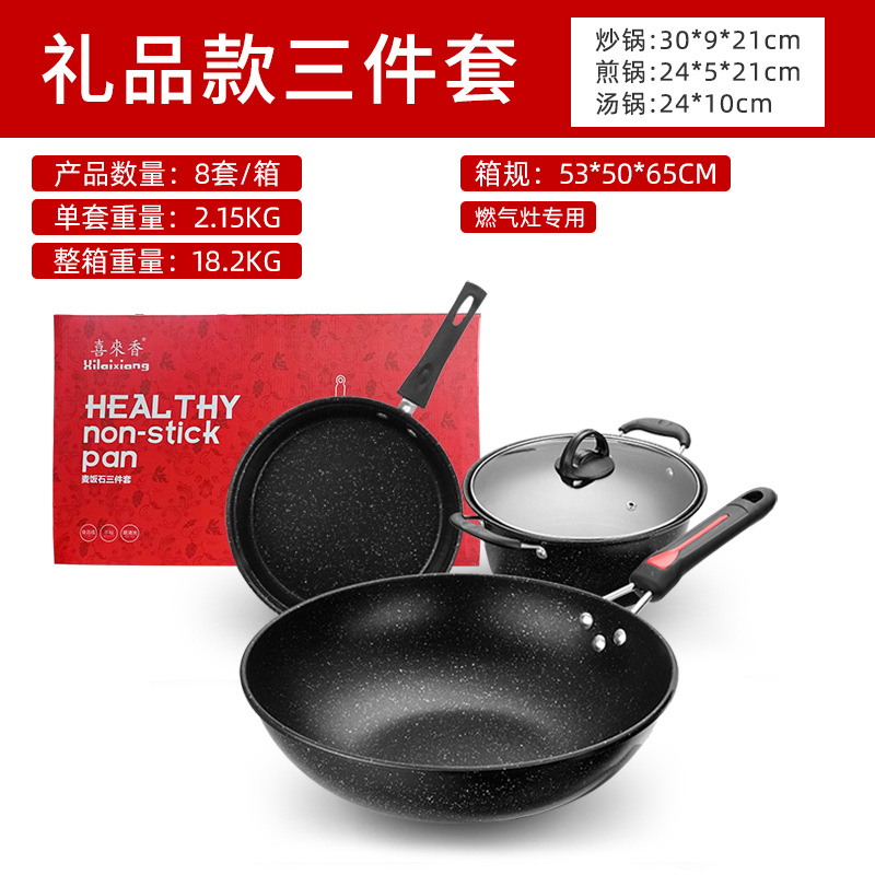 【中文礼盒】礼品款麦饭石三件套【燃气灶专用】 ¥4473 4804套可售