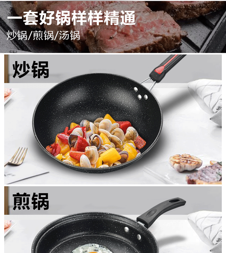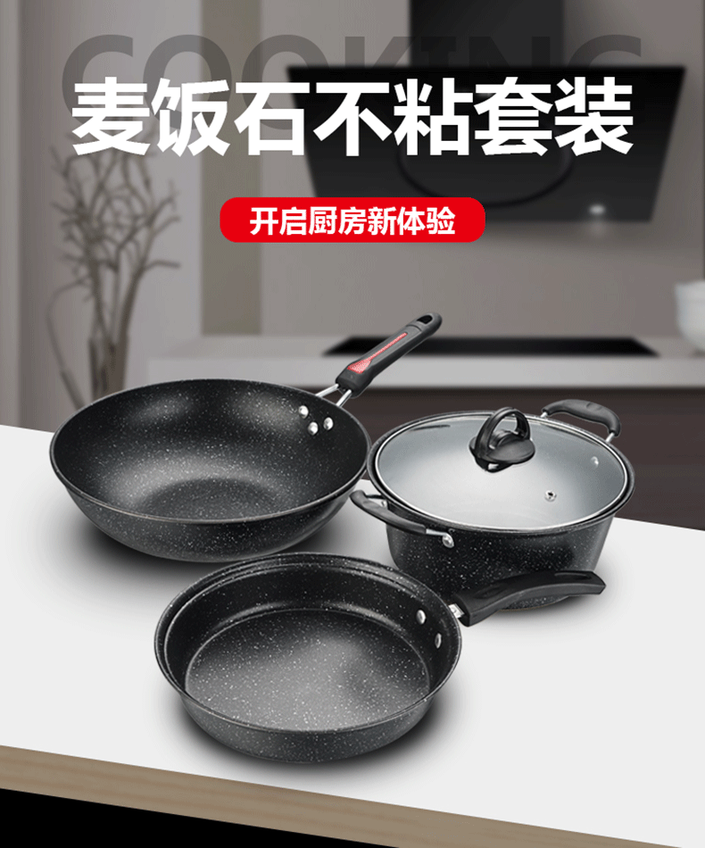 炒锅煎锅汤锅展销活动开业礼品锅具大全饭麦石不粘锅具套装三件套 English | 投诉