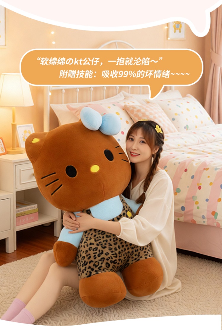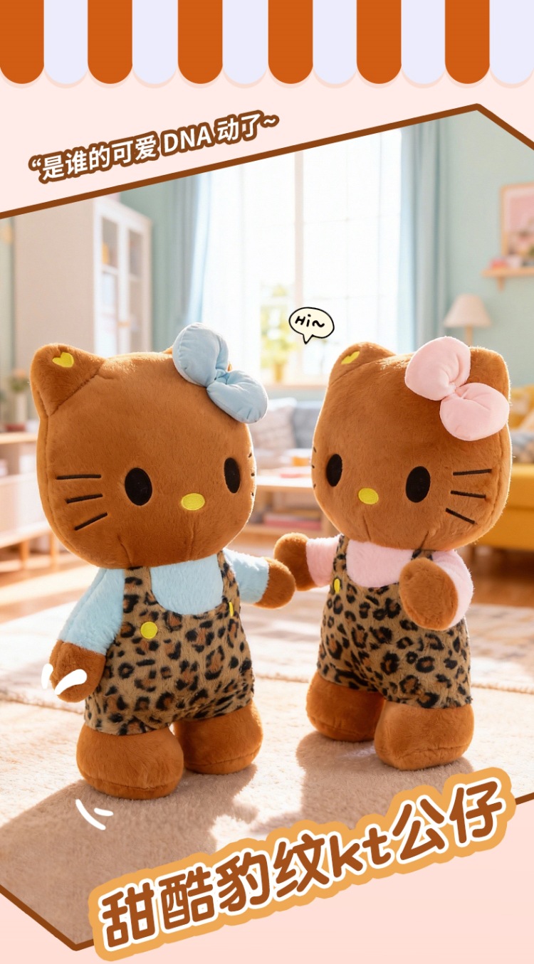 黑皮豹纹KT猫公仔可爱公主猫KT毛绒玩具外贸批发 English | 投诉