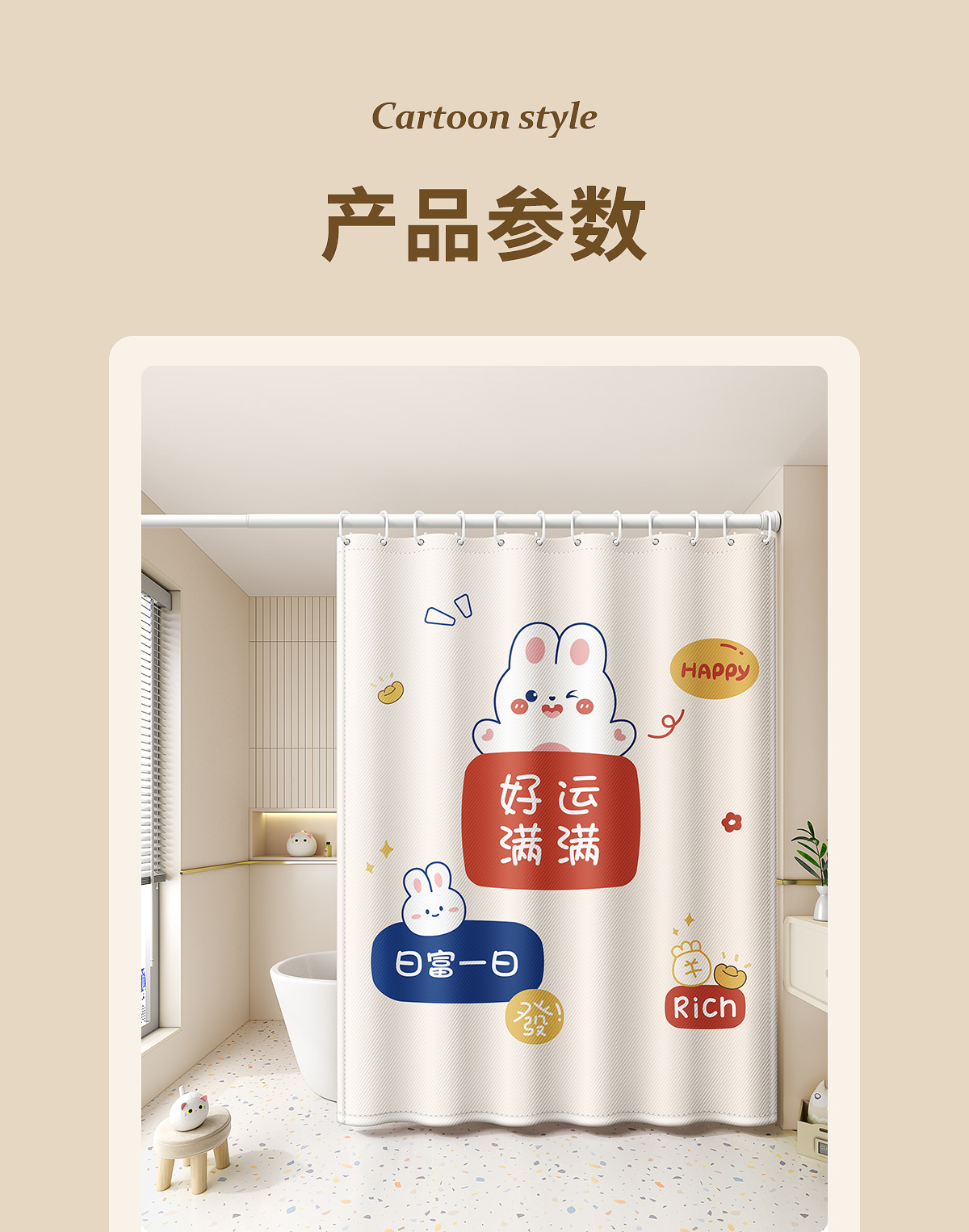 | 可定制(适用浴帘、门帘、窗帘、隔断帘等)/好运满满 | ¥5700 | 300套可售 |