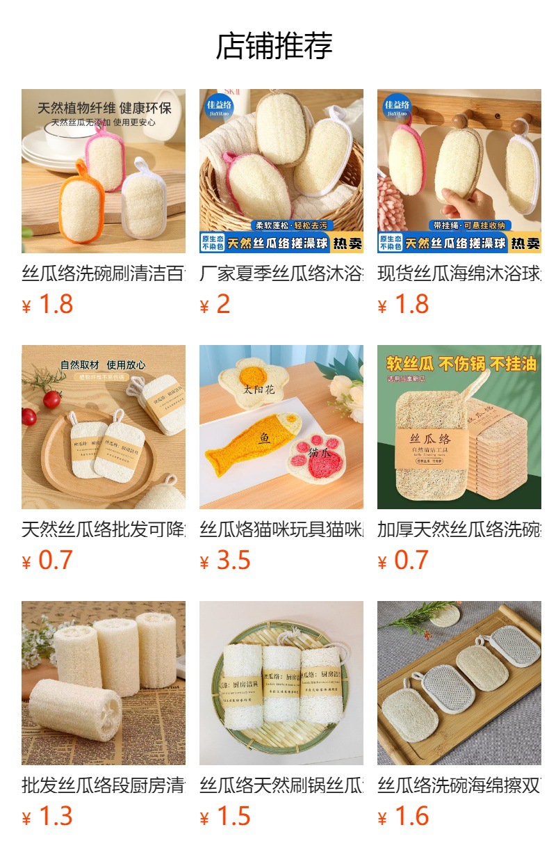 | 丝瓜络搓澡片9*12 | ¥300 | 604184个可售 |