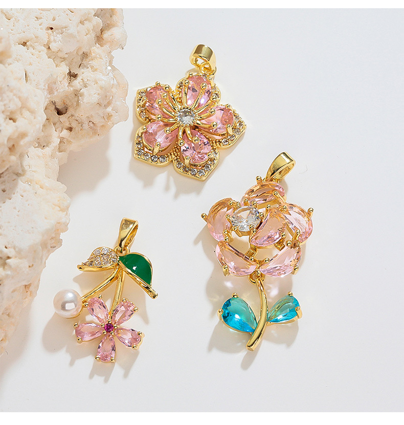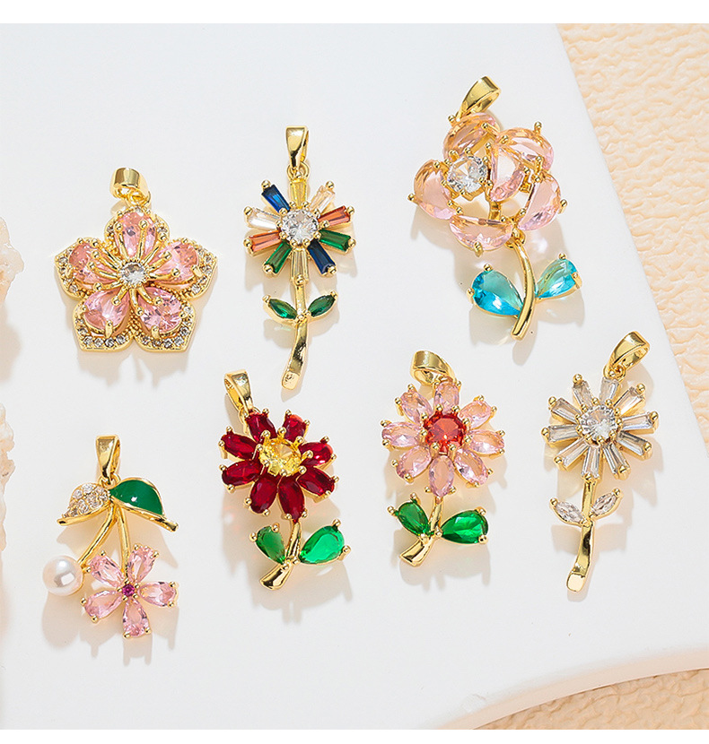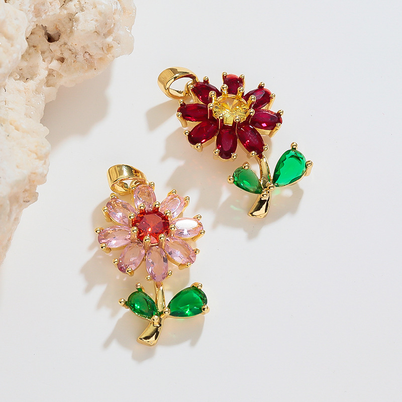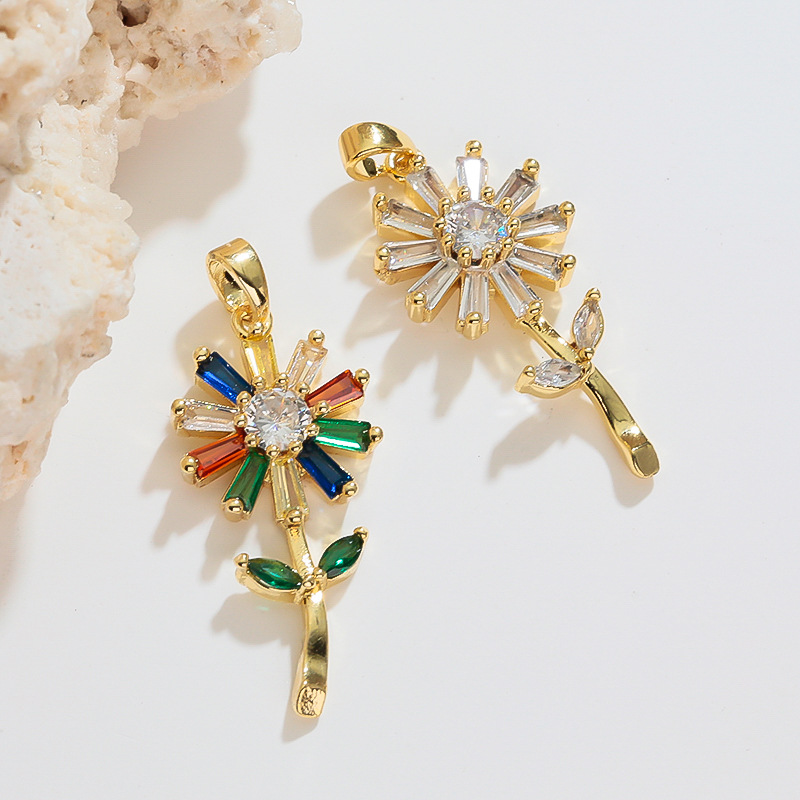 跨境热销清新甜美雏菊太阳花花朵微镶DIY百搭气质项链饰品挂坠