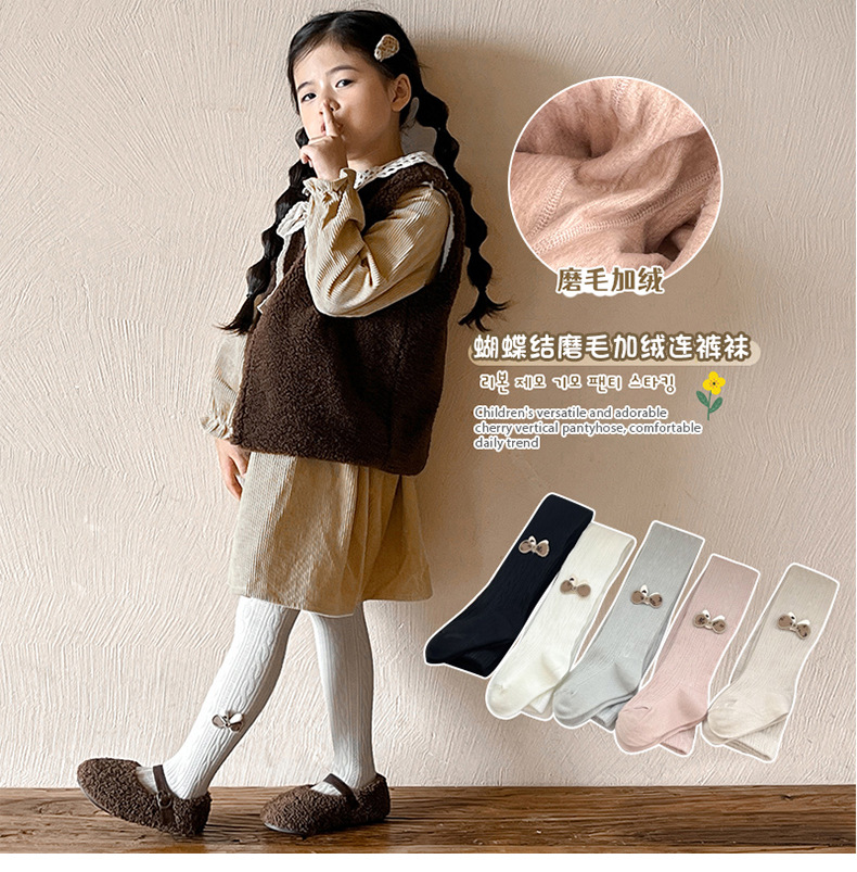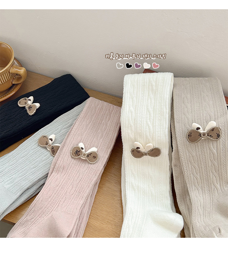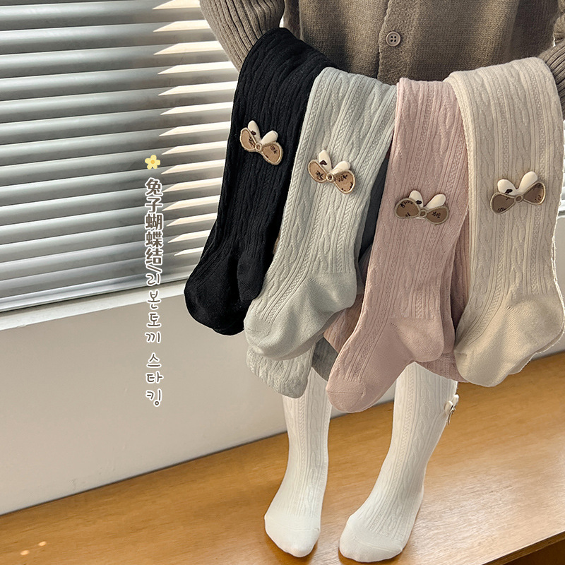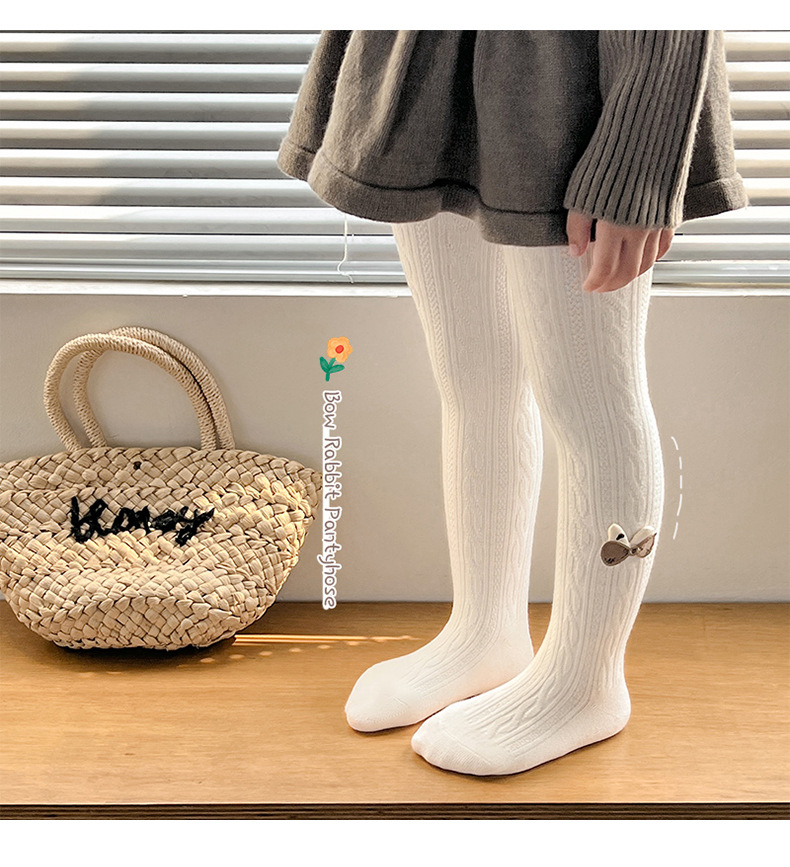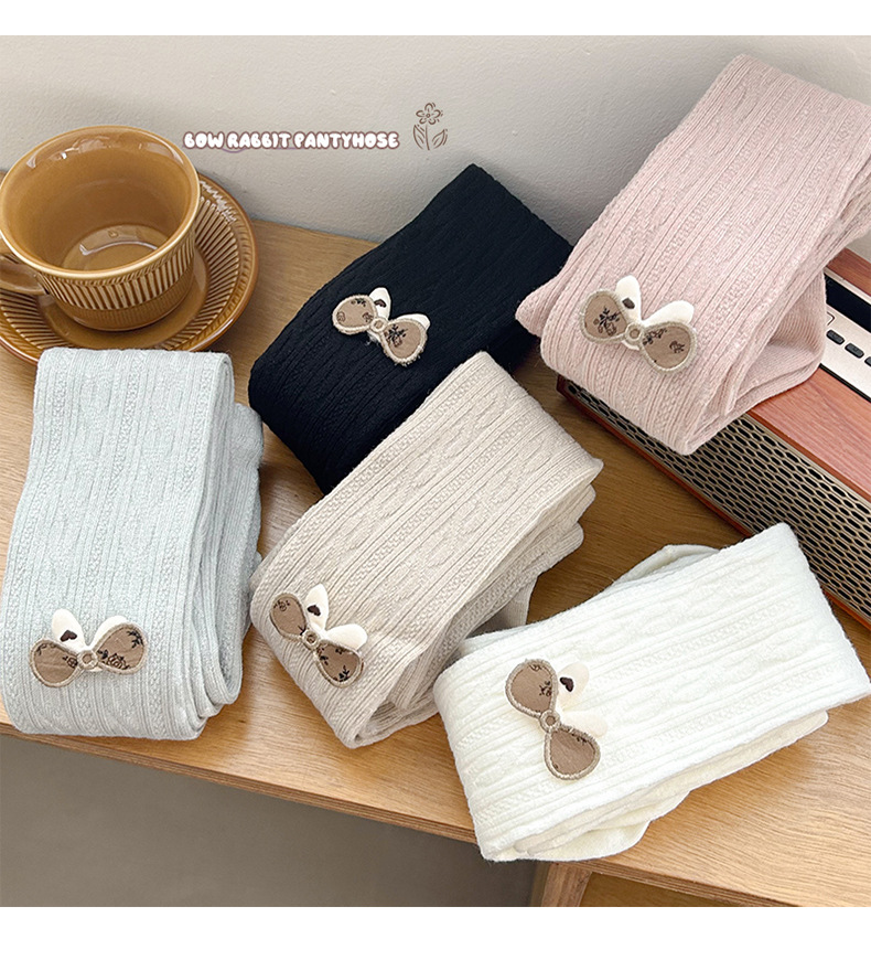 麻花磨毛薄绒兔耳朵连袜