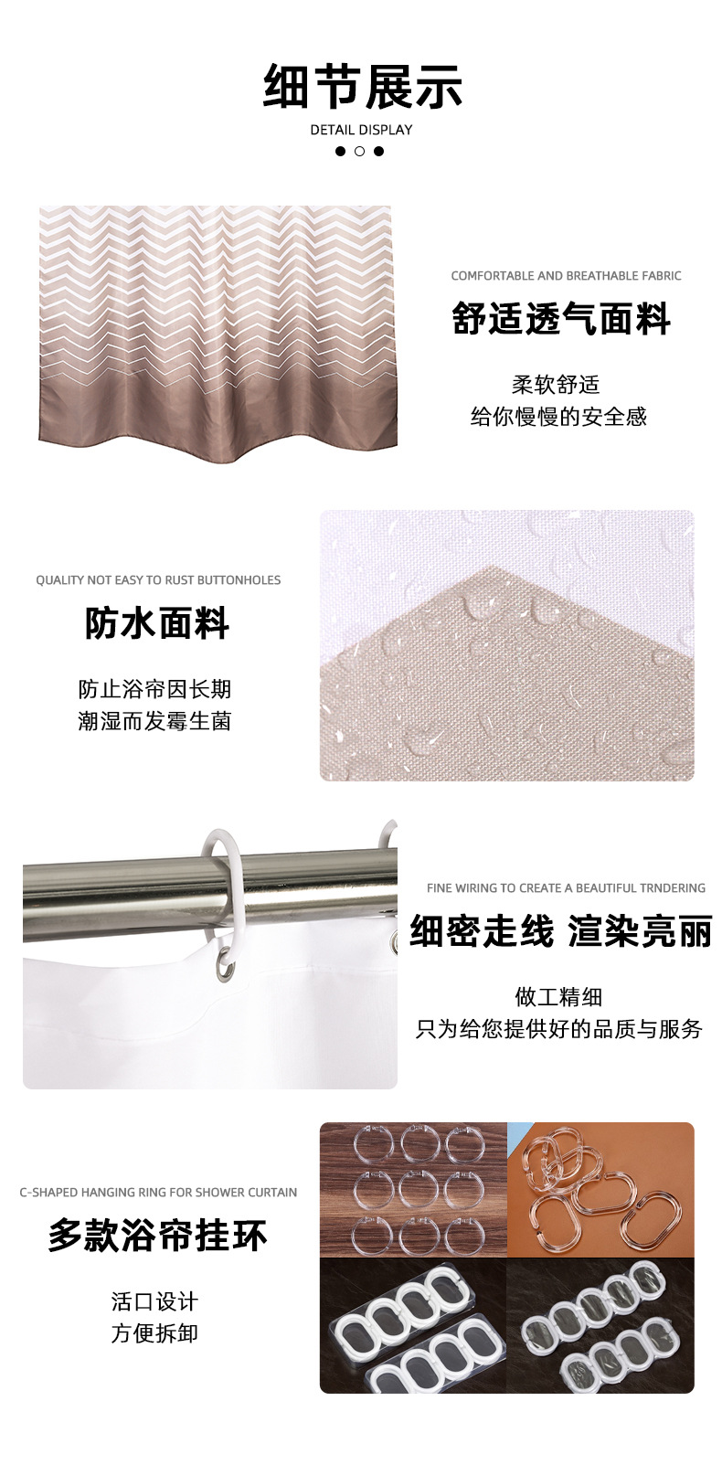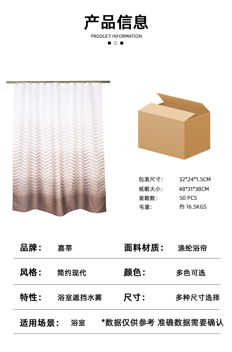 厂家直销跨境涤纶浴帘高档加厚防水防霉隔水帘洗浴帘卫生间帘子 English | 投诉