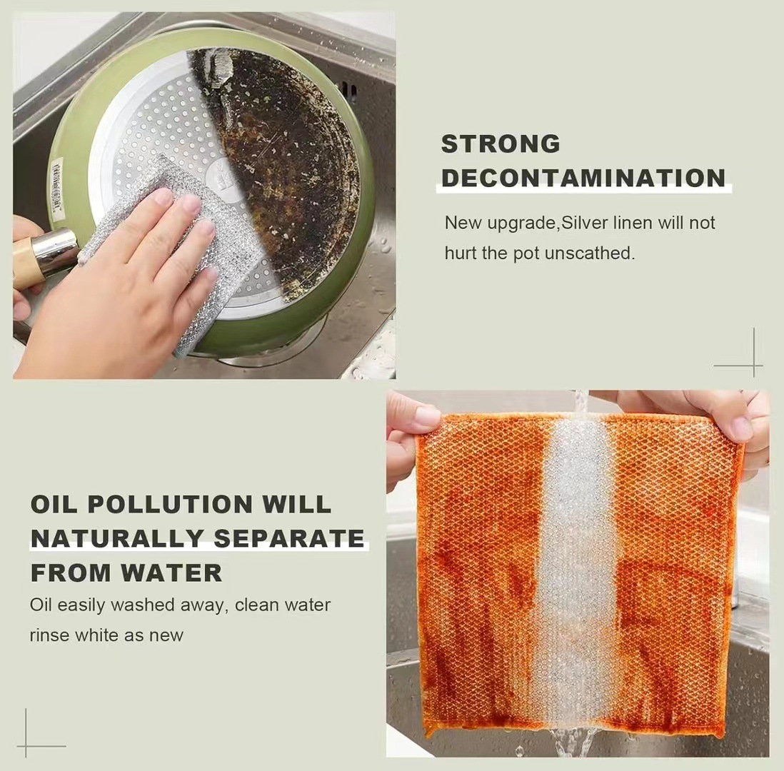 银丝抹布厨房灶台钢丝洗碗布不沾油祛油袪污垢金属丝银丝清洁抹布 English | 投诉