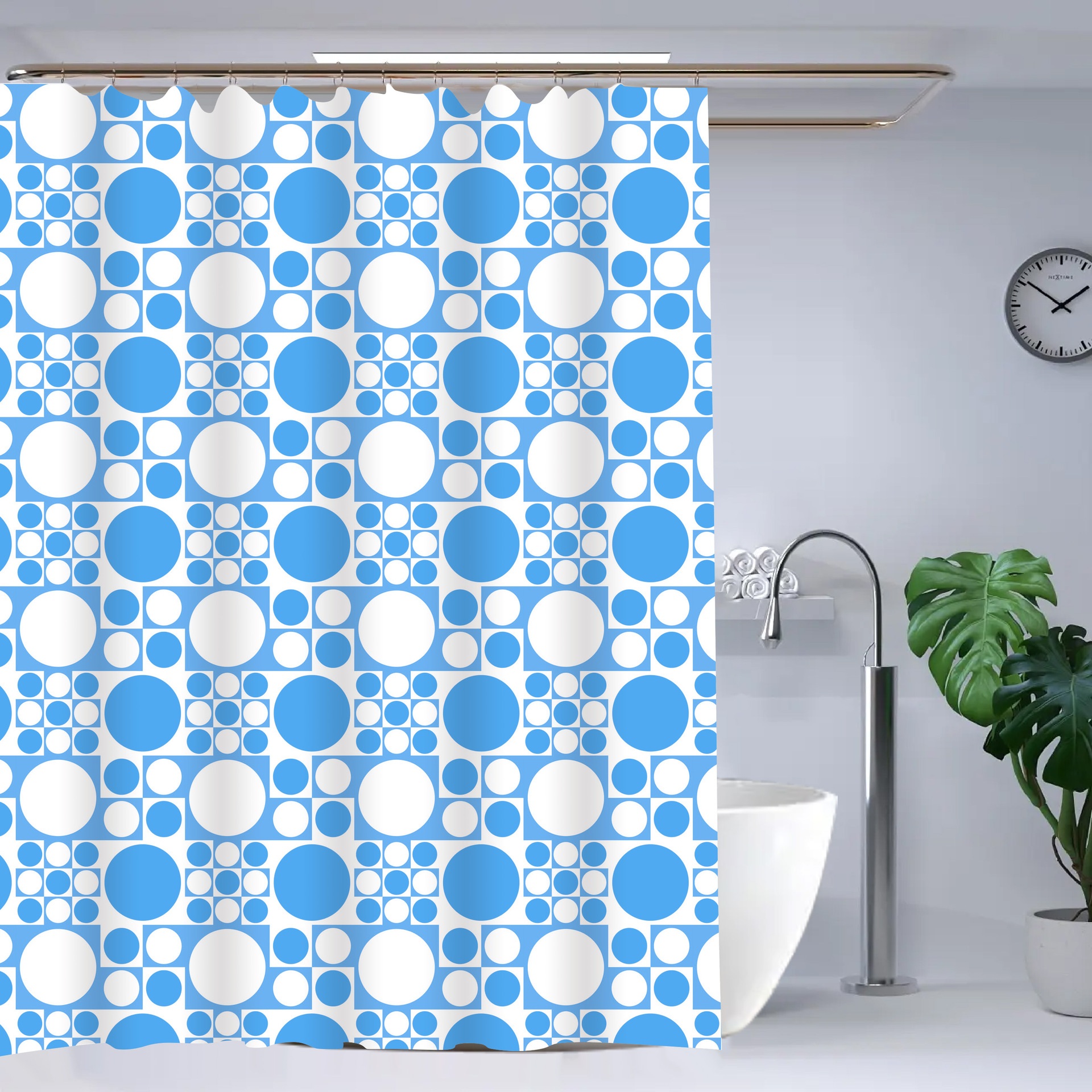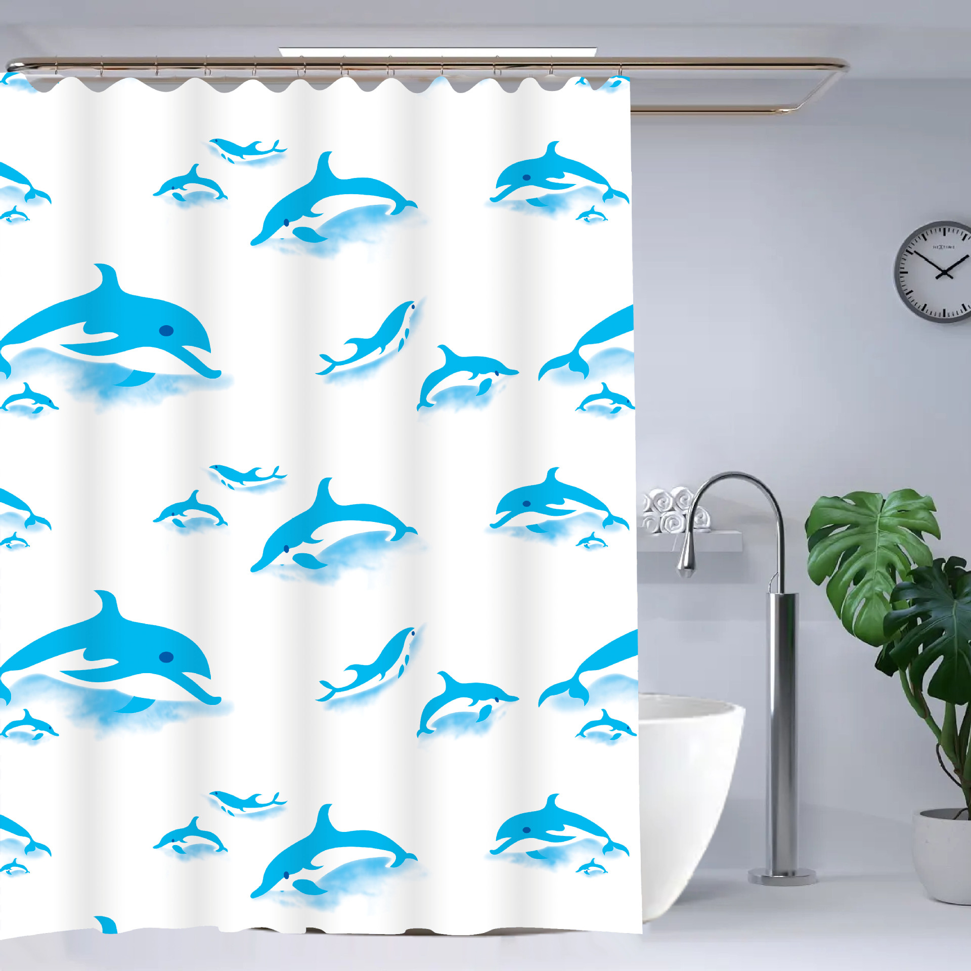 源头厂家外销浴帘泡壳包装PE遮挡浴帘印花防淋浴帘 挂钩 干湿分离 English | 投诉