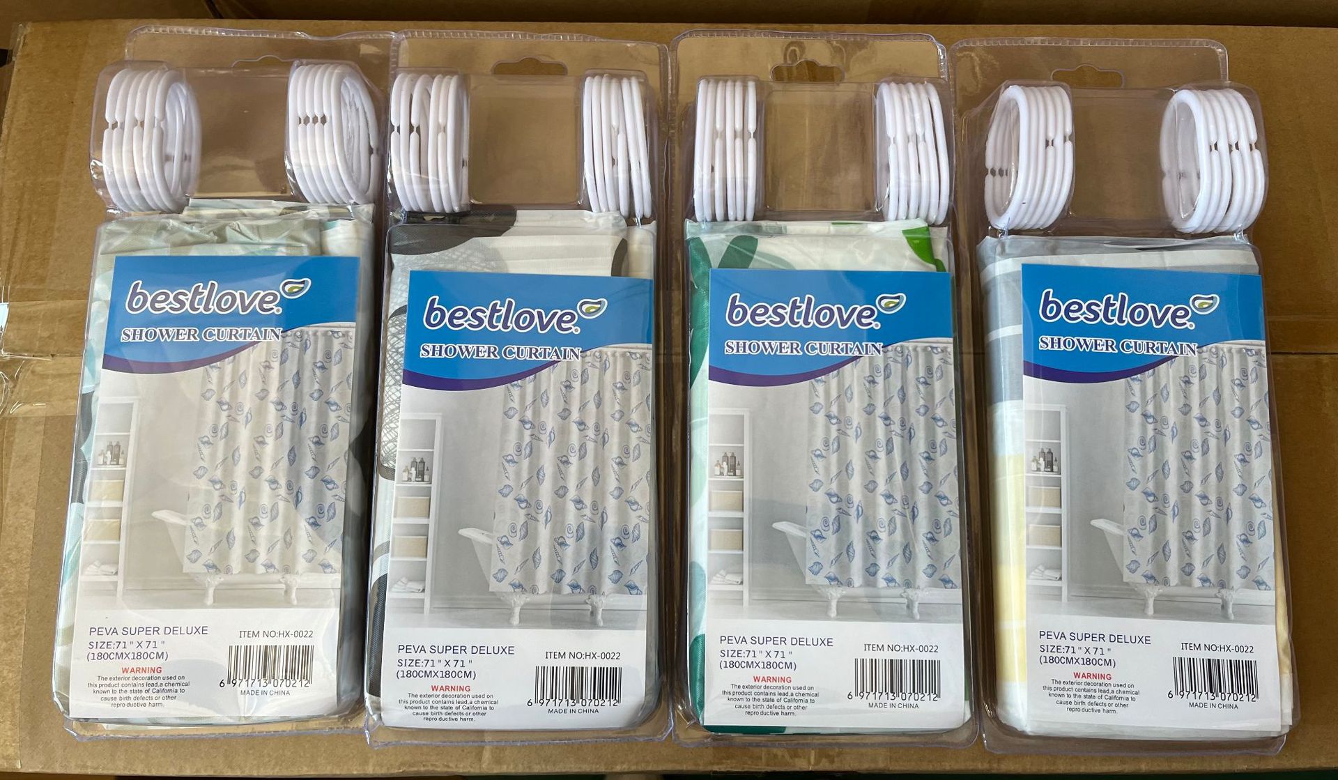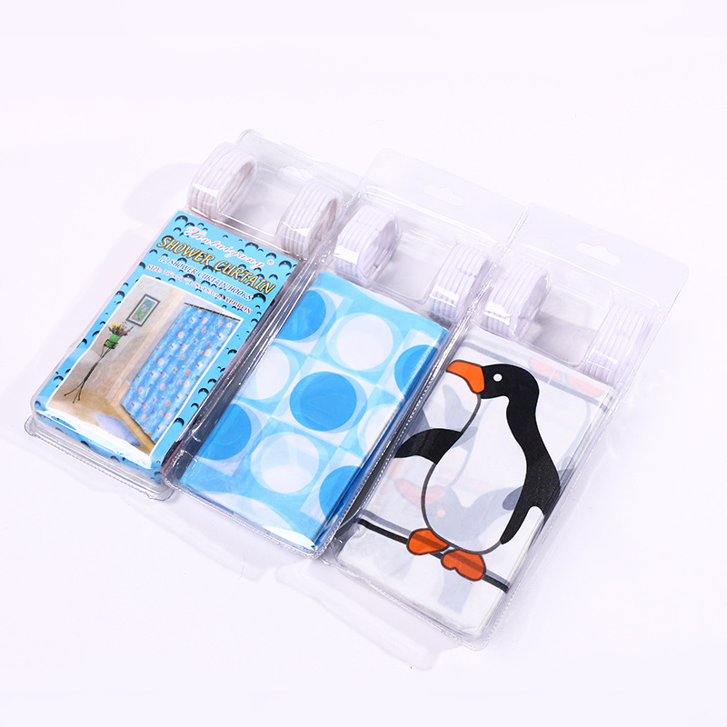 源头厂家外销浴帘泡壳包装PE遮挡浴帘印花防淋浴帘 挂钩 干湿分离