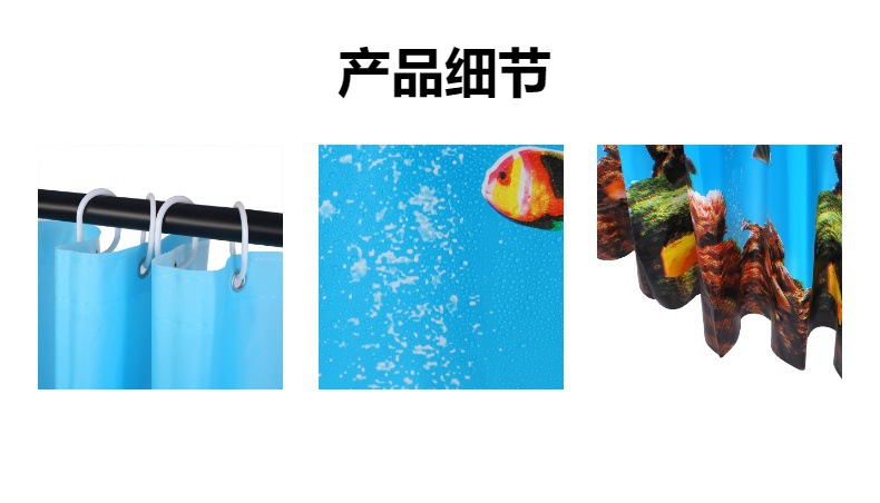 厂家新款海洋主题加厚防霉加厚防水卫生间专用浴帘挂帘套装批发 English | 投诉