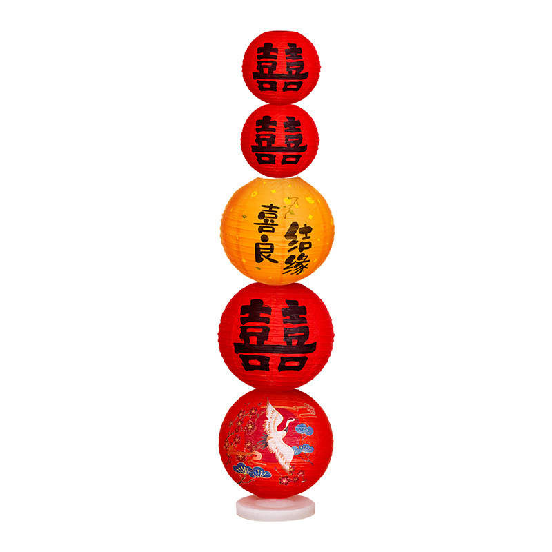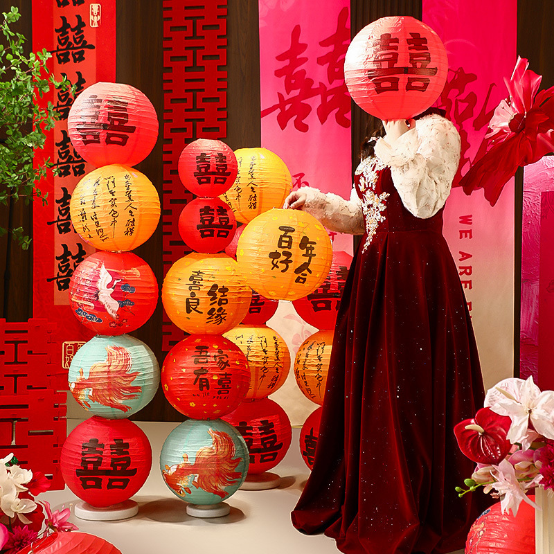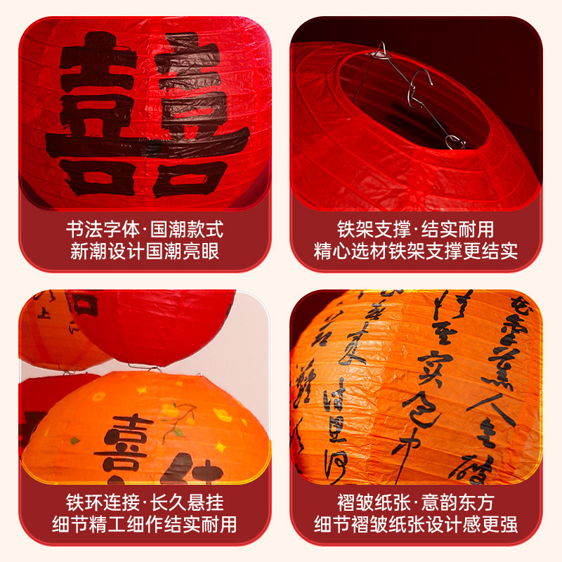 结婚喜字红色灯笼双囍纸灯笼婚礼拍照道具婚房布置装饰新年装饰品喜字红灯笼挂饰2024新款发光宫灯春节结婚场景氛围布置