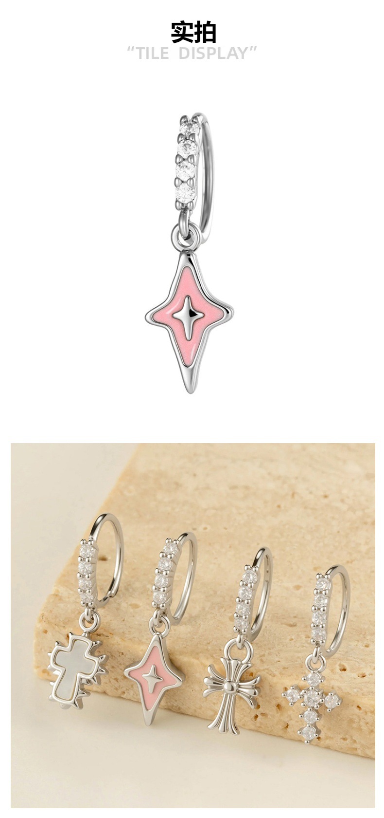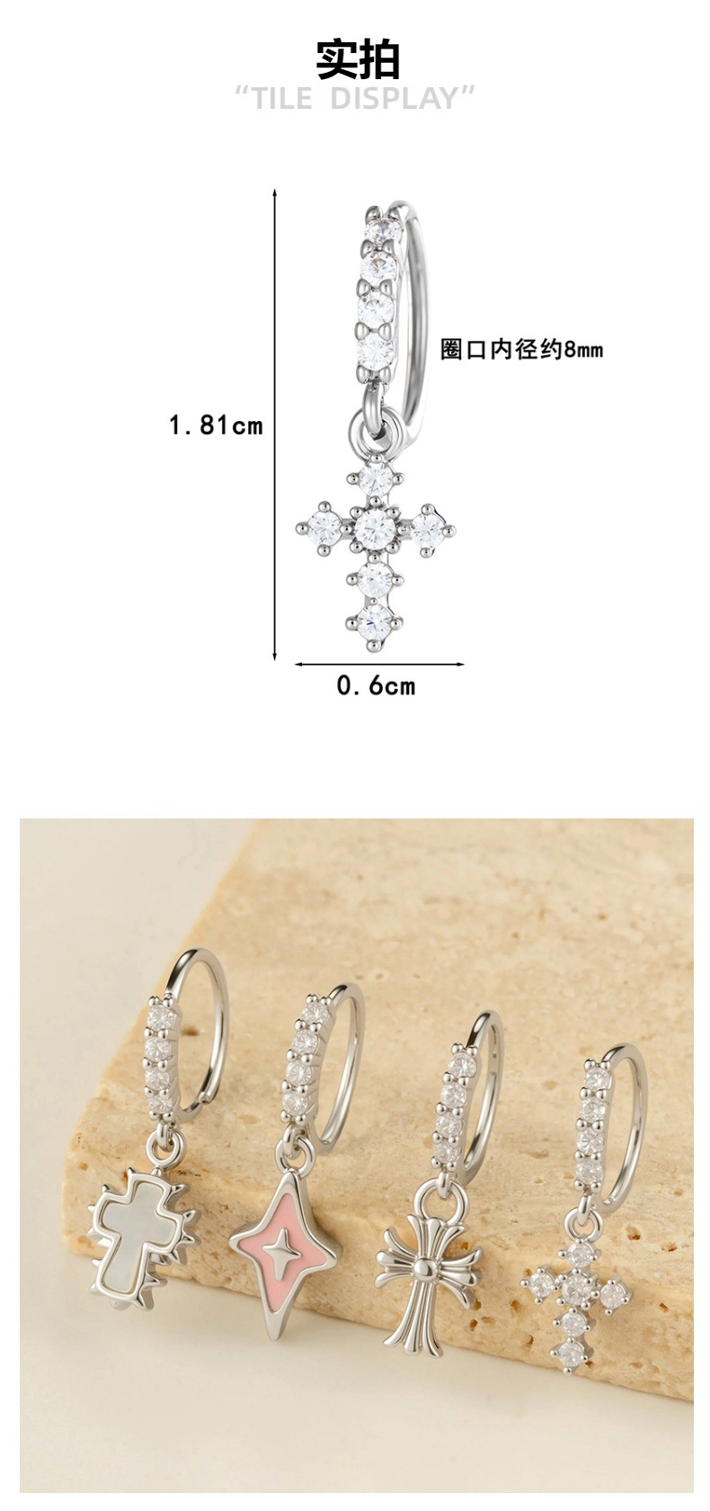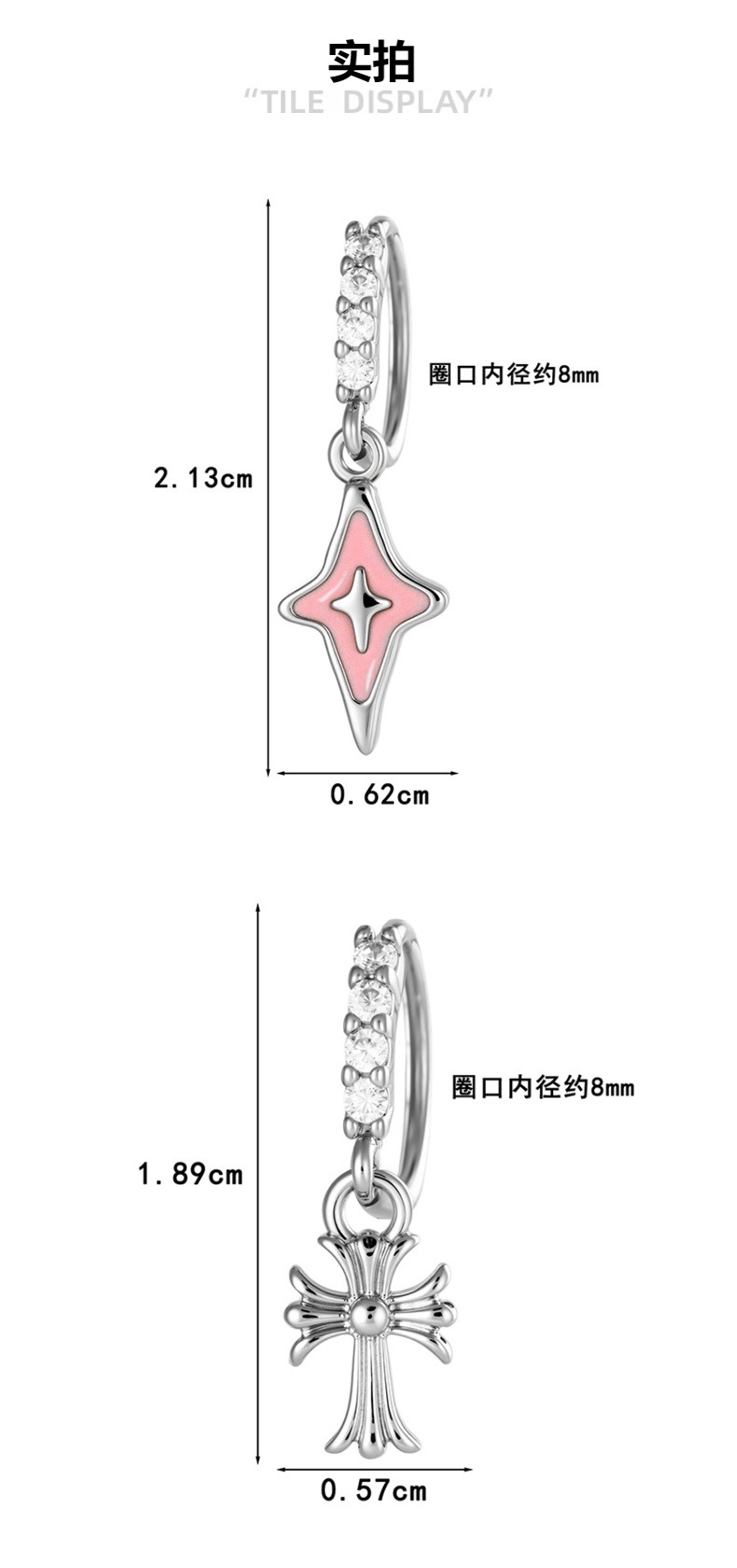 亨森新款微镶锆石滴油复古十字架吊坠耳扣耳环甜美少女鼻饰耳饰 English | 投诉