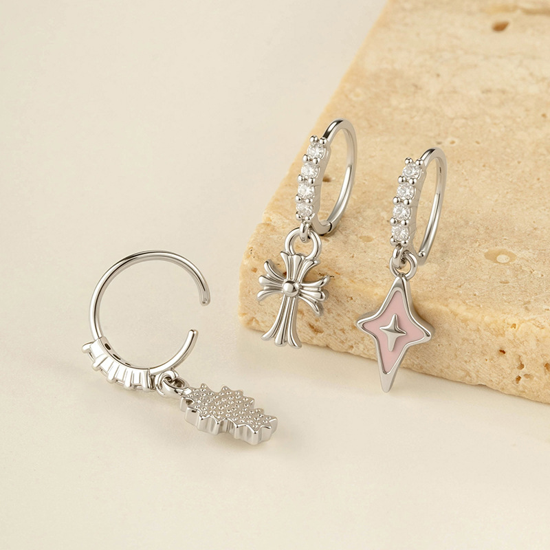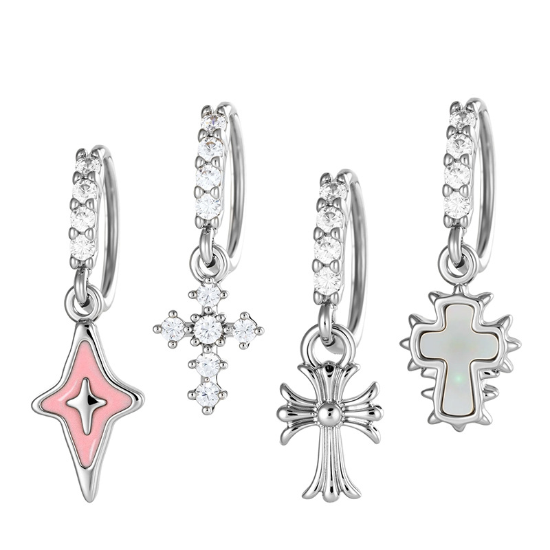 亨森新款微镶锆石滴油复古十字架吊坠耳扣耳环甜美少女鼻饰耳饰