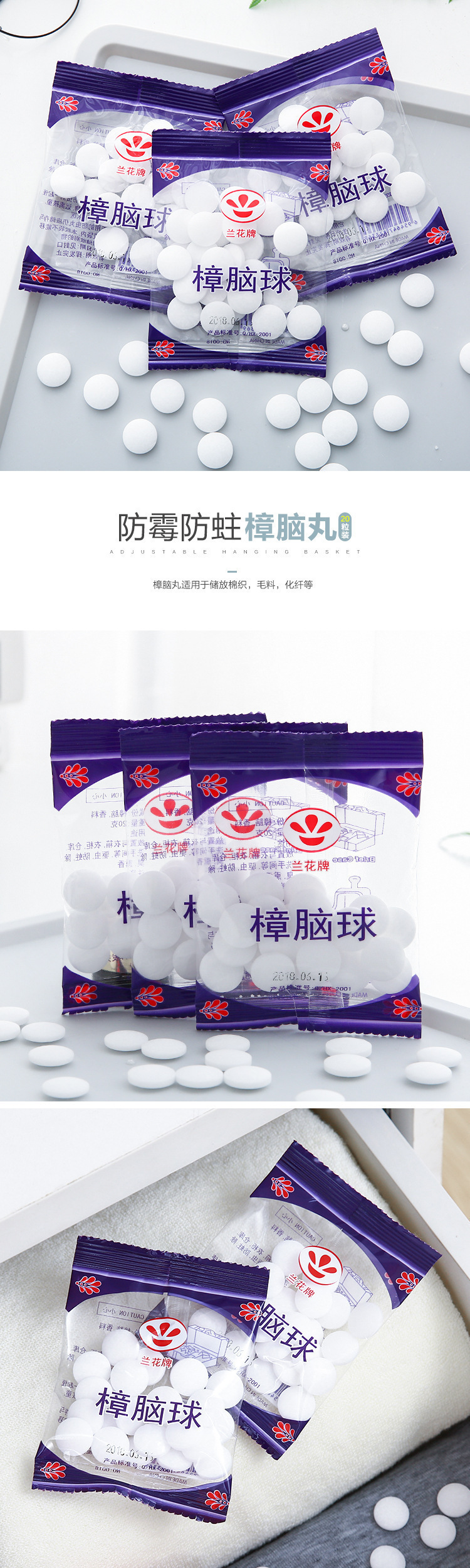 功能: 空气清新 品牌: 起水 香型: 薄荷 是否进口: 否 产地: 浙江 货号: 樟脑丸 箱装数量: 1000 净含量: 兰花牌樟脑丸20颗 主要下游平台: ebay,亚马逊,wish,速卖通,独立 主要销售地区: 欧洲,南美,东南亚,北美,东北亚,中东 有可授权的自有品牌: 是 是否跨境出口专供货源: 是 重量: 0.025 kg/包