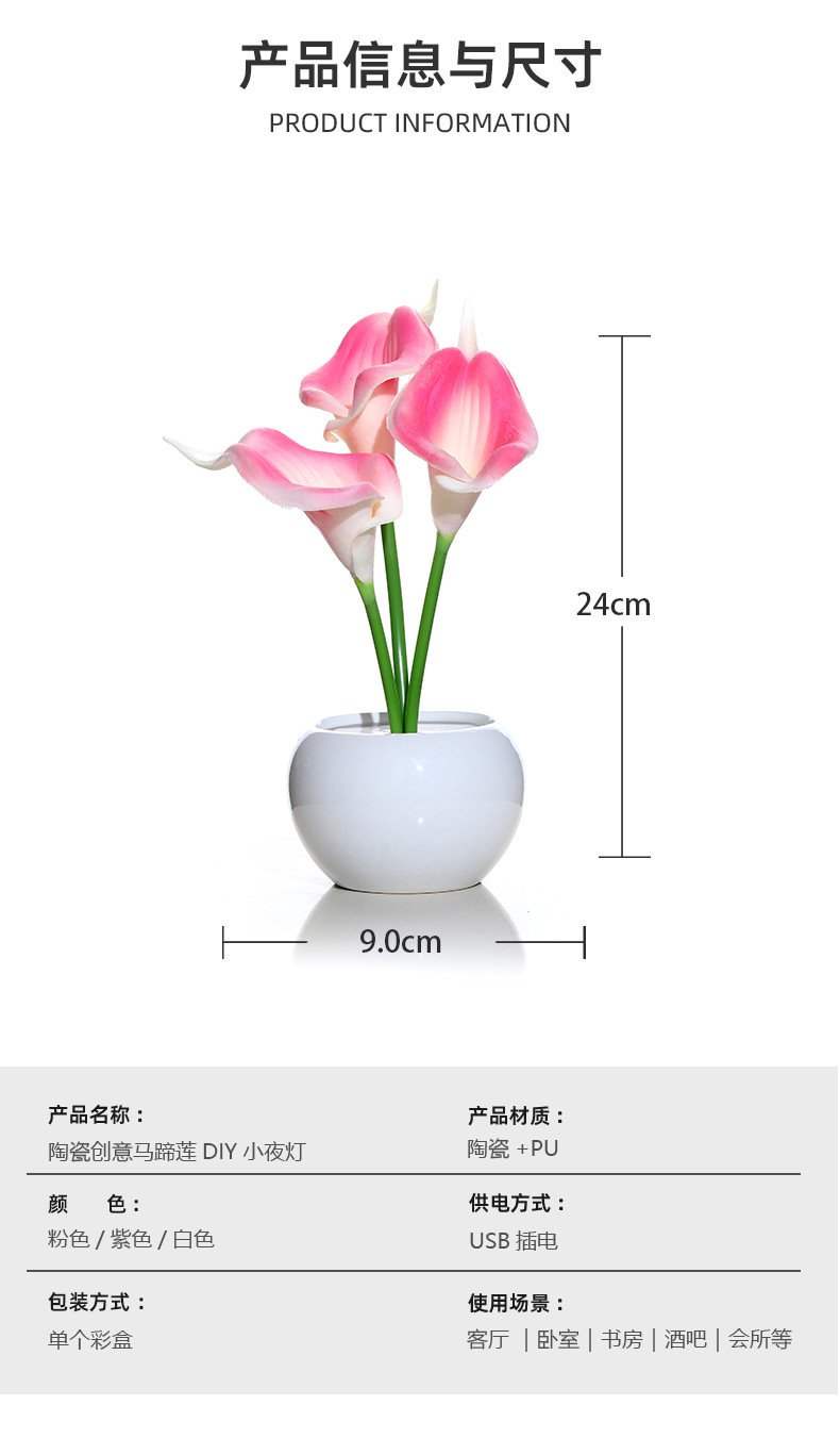 【产品名称】 : 陶瓷创意马蹄莲DIY小夜灯
