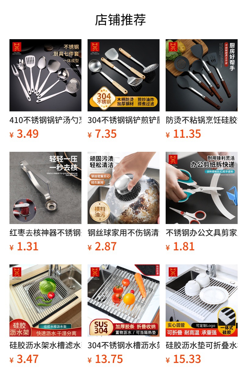 | 【含税价 430#】3厘全钢厨具(大漏) | ¥992 | 49965把可售 |