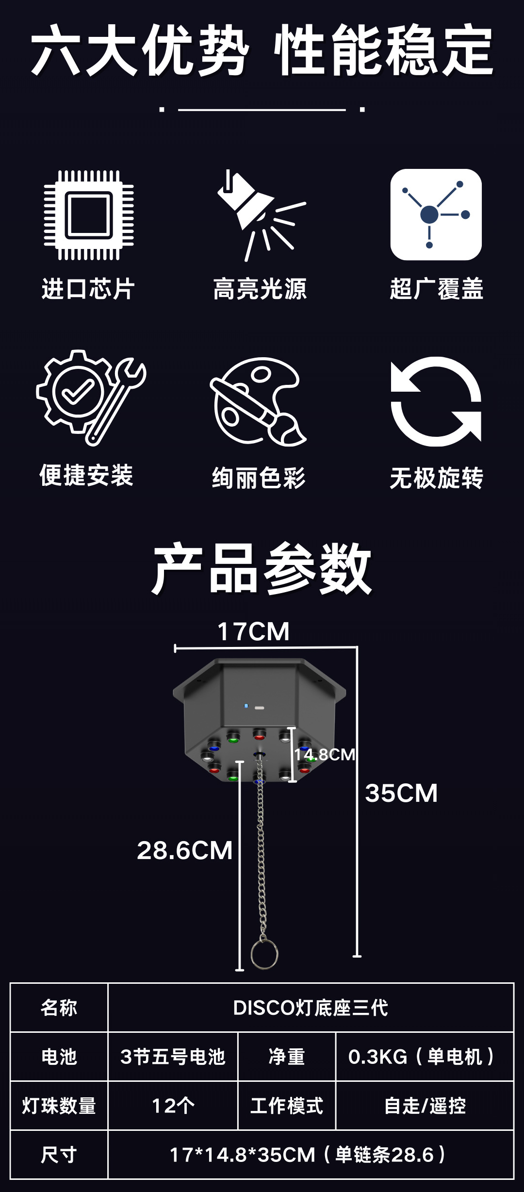 disco灯底座带电机三代产品规格