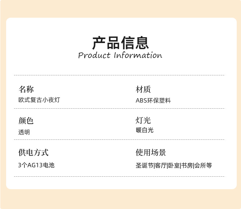 【产品名称】 : 复古细纹小夜灯-透明款