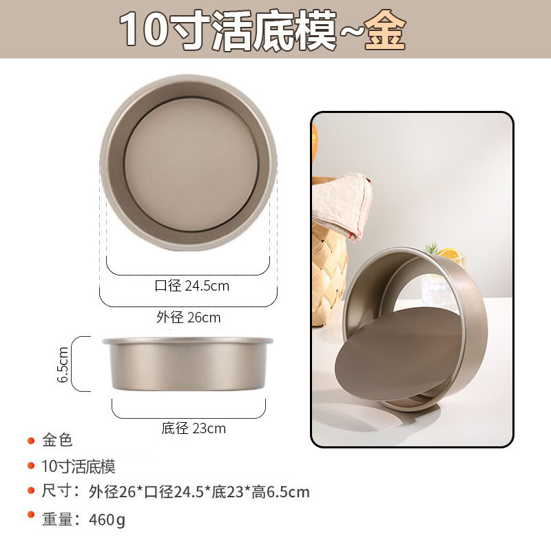 【 金 /黑 】10寸活底模: 外径:26cm 口径:24.5cm 底径:23 高:6.5cm 【重量】10寸:460克
