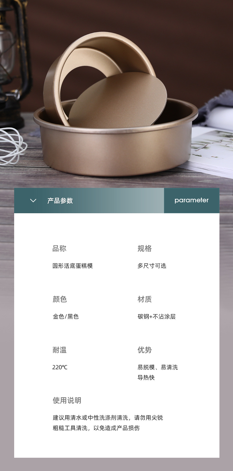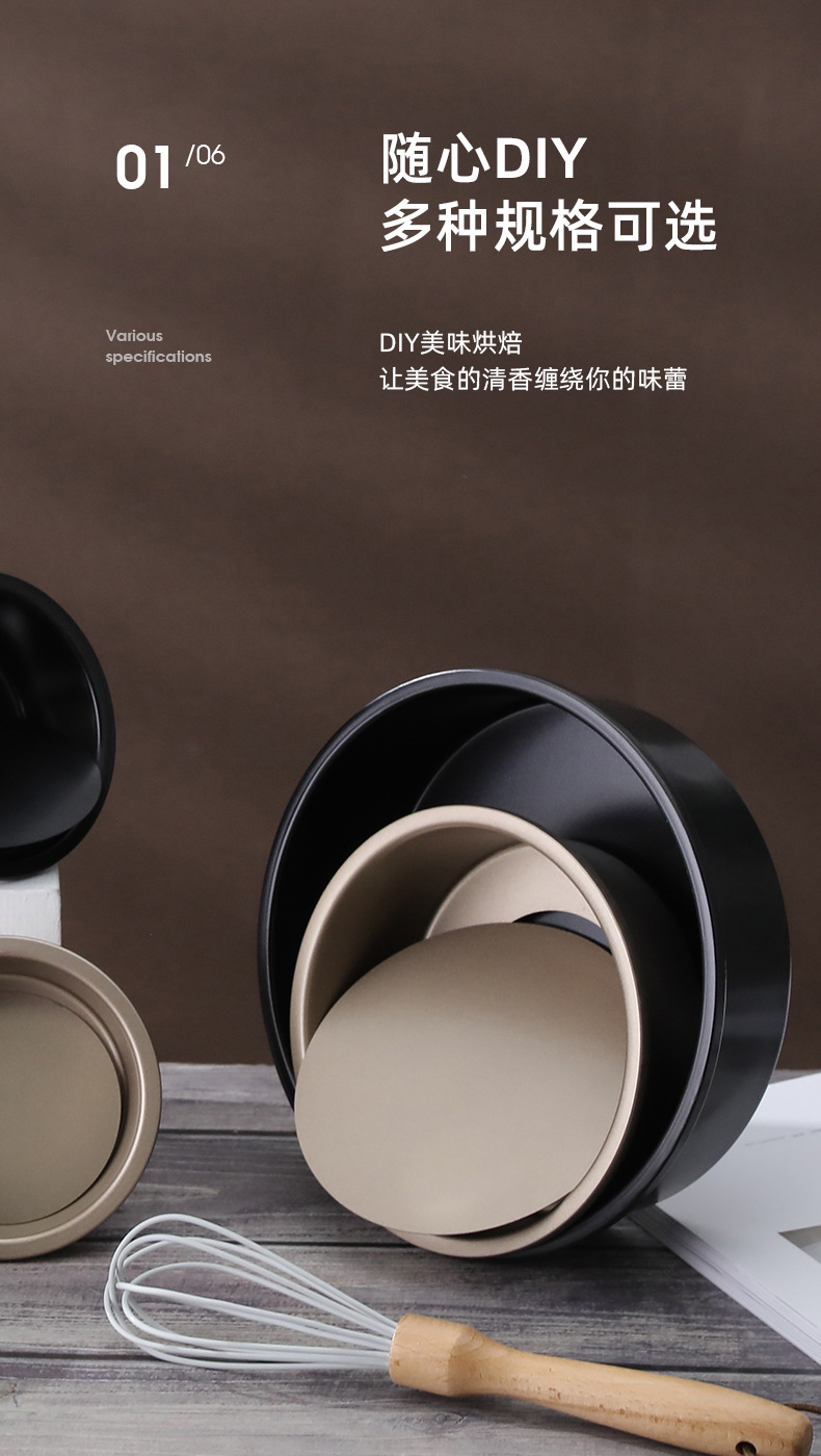 【 金 /黑 】 6寸活底模: 外径:16.6cm 口径:15.2cm 底径:14.2 高:5.3cm 【重量】8寸:195克