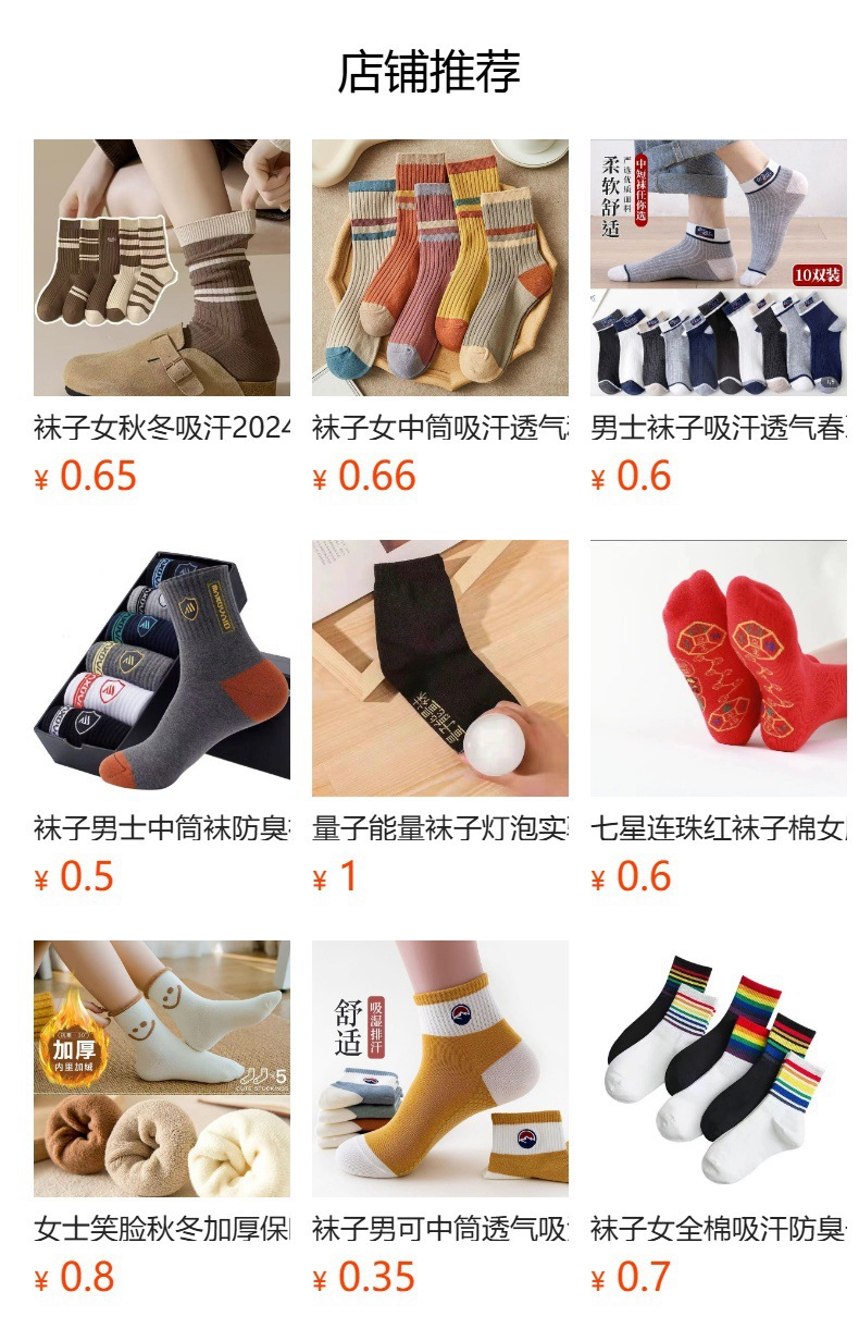 | 袋装混搭【非独立包装】 | ¥192 | 9999双可售 |
