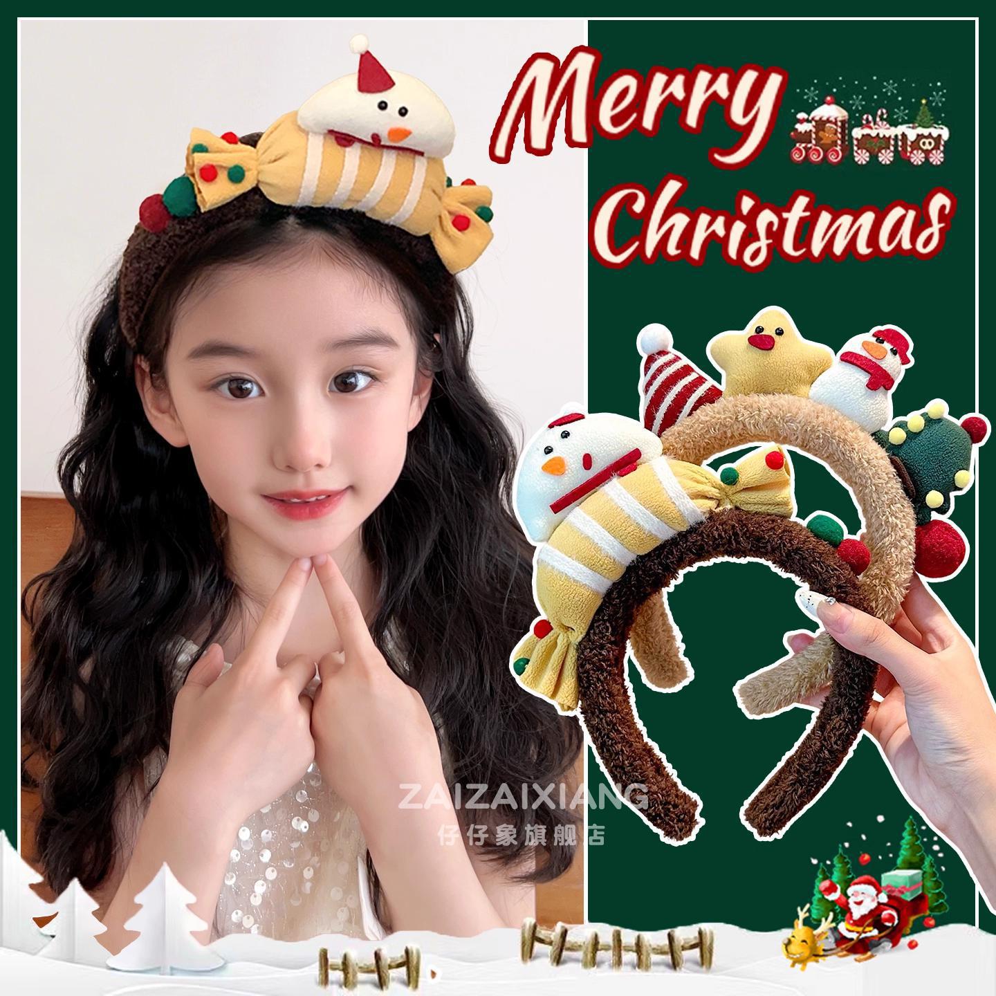 圣诞节小雪人毛绒麋鹿发箍节日商店表演发饰装乐园可爱小礼物头饰