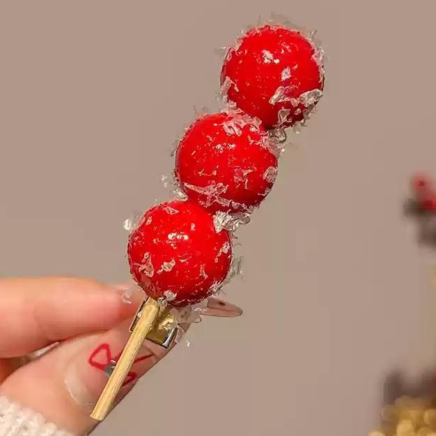 红色冰糖葫芦发夹女趣味仿真食物儿童新年头饰侧边刘海夹鸭嘴夹子 English | 投诉