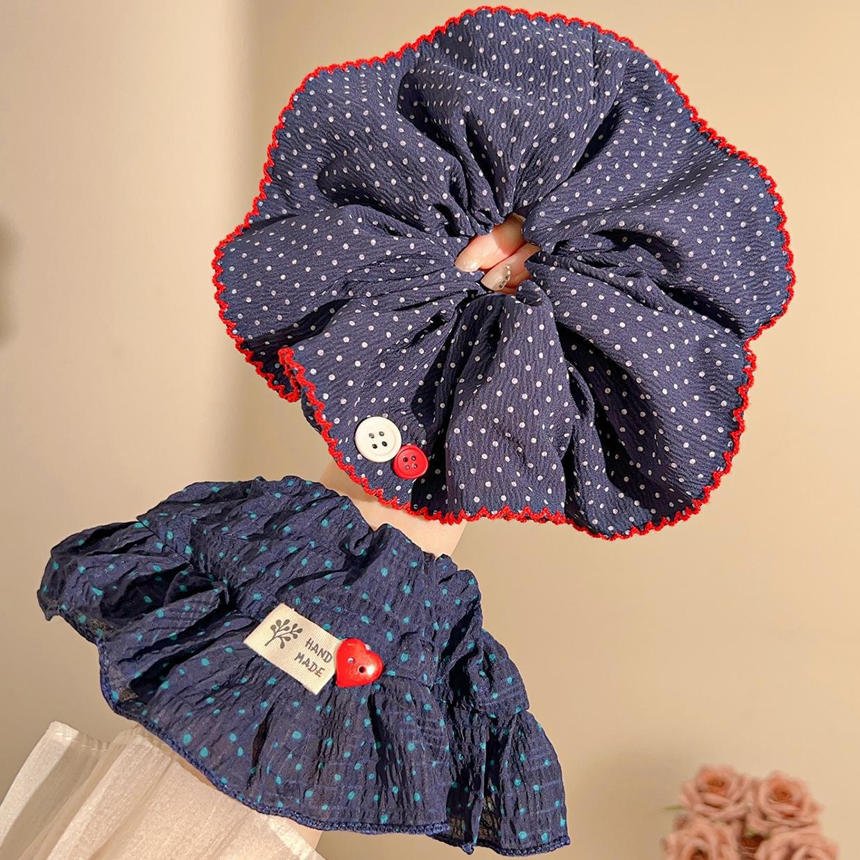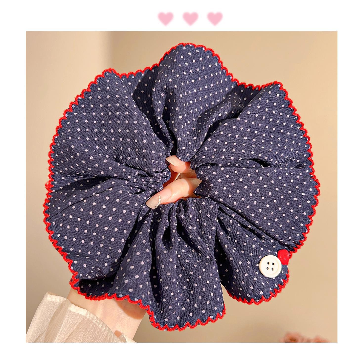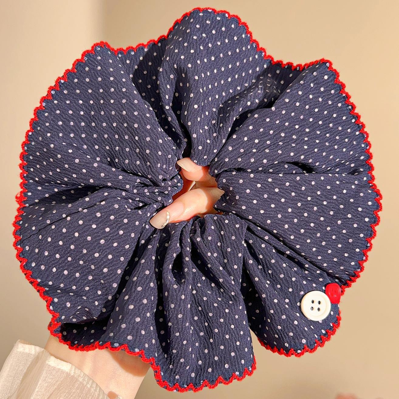 超大号波点大肠发圈复古藏蓝色头绳女高级感发绳扎丸子头皮筋发饰 English | 投诉