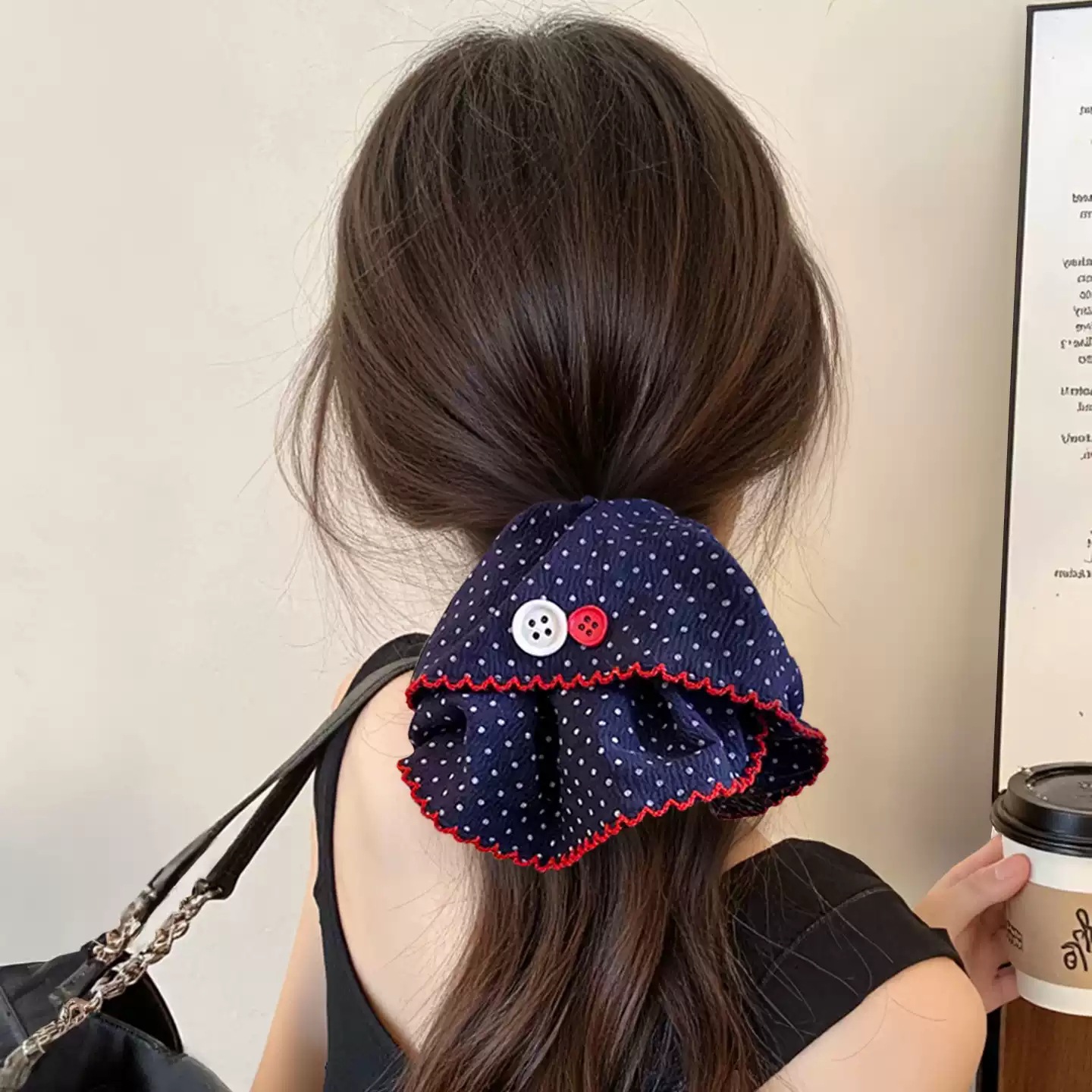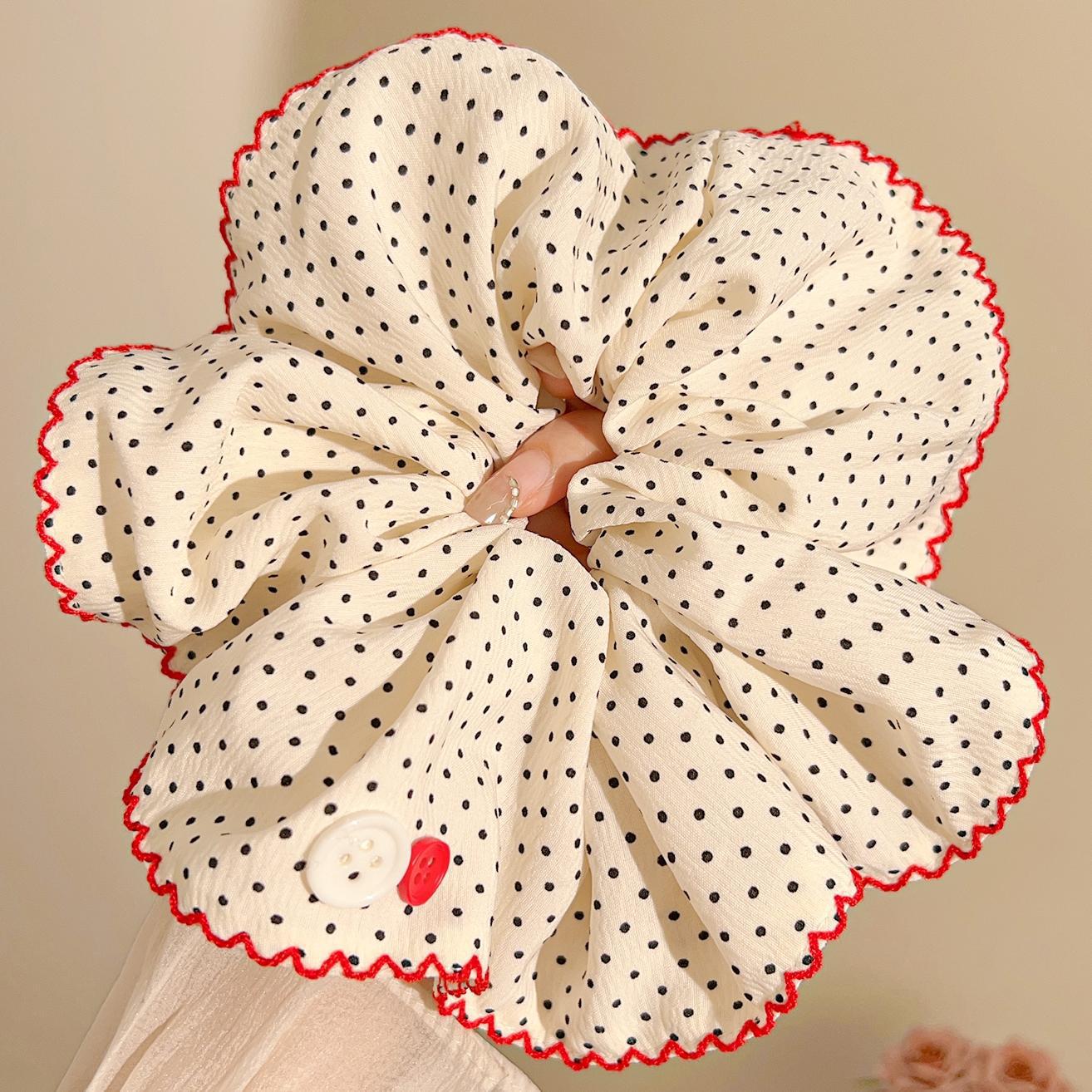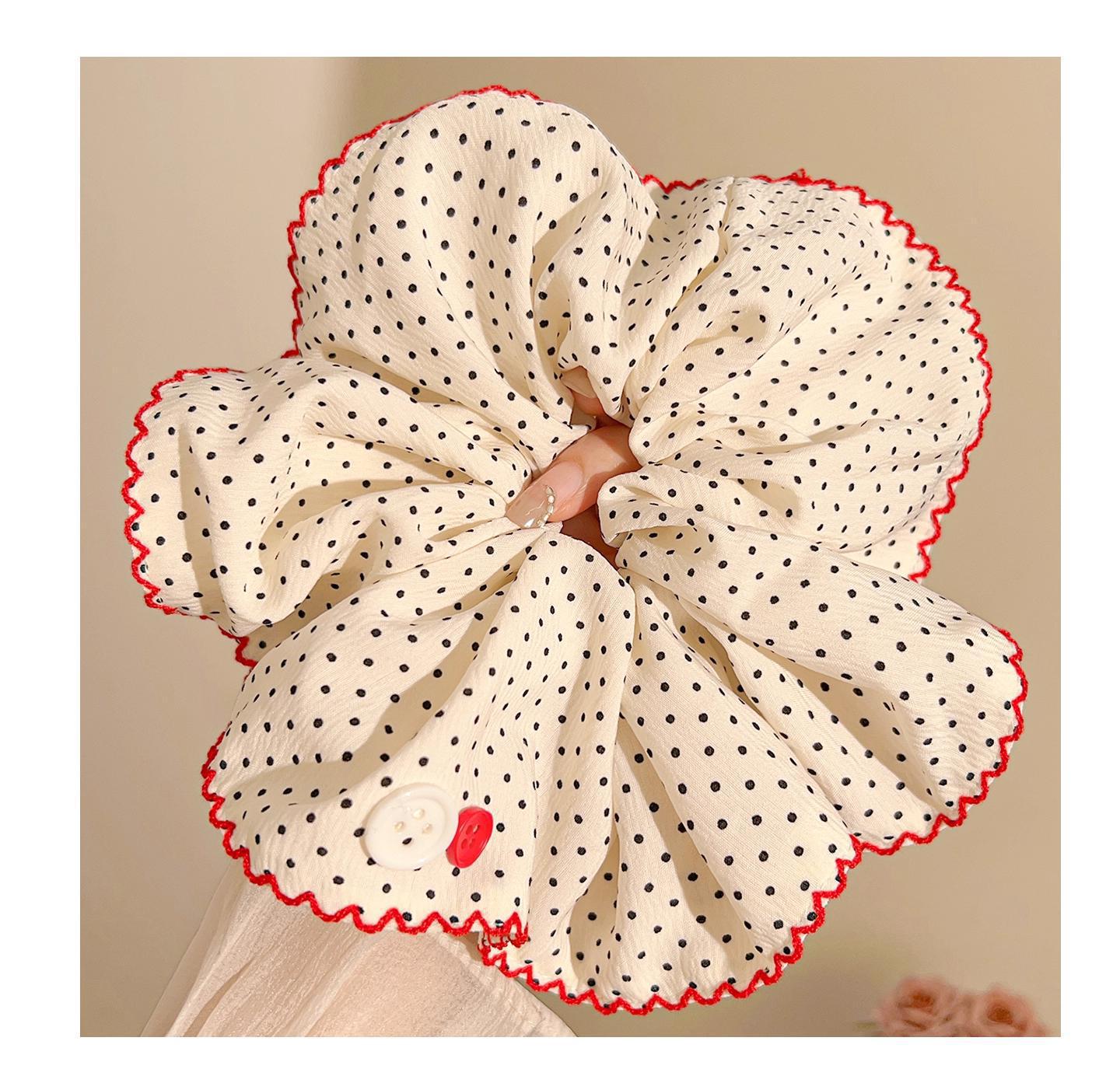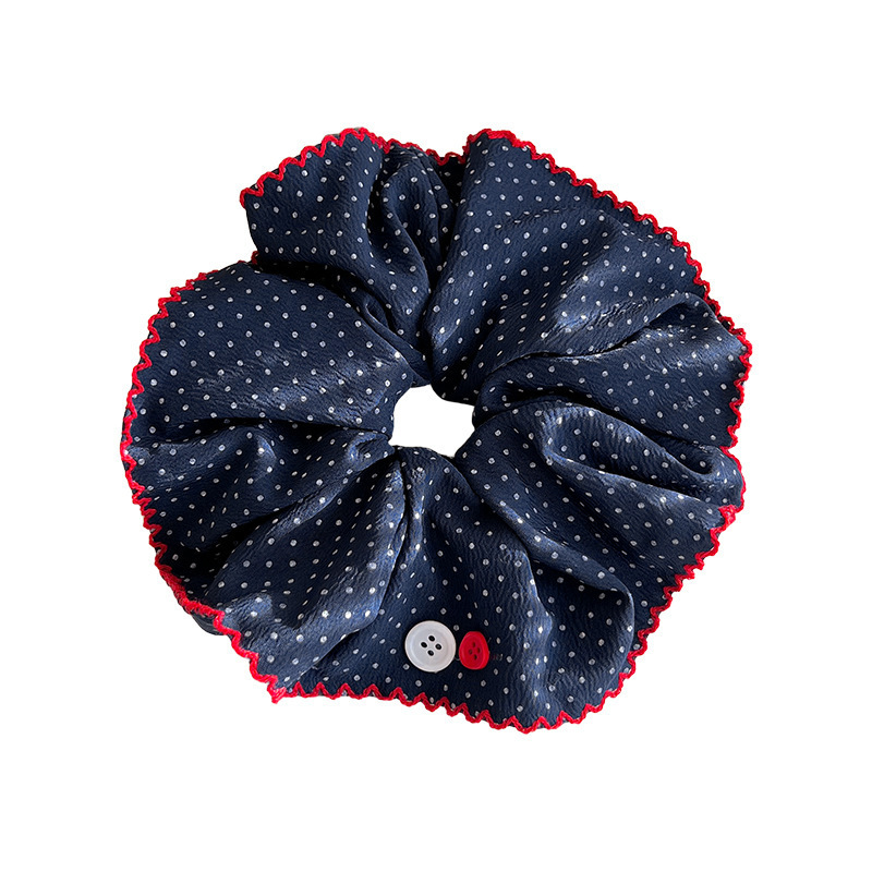 超大号波点大肠发圈复古藏蓝色头绳女高级感发绳扎丸子头皮筋发饰 English | 投诉