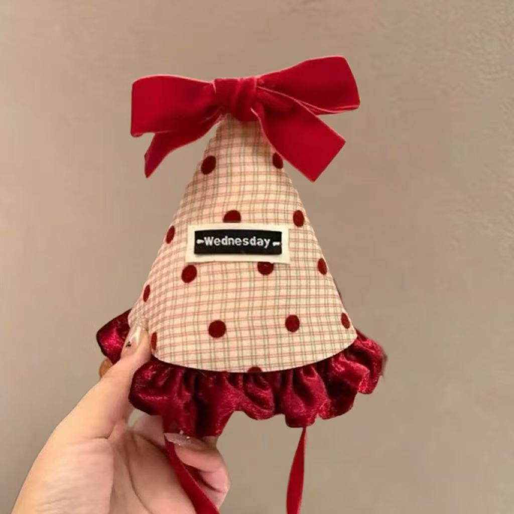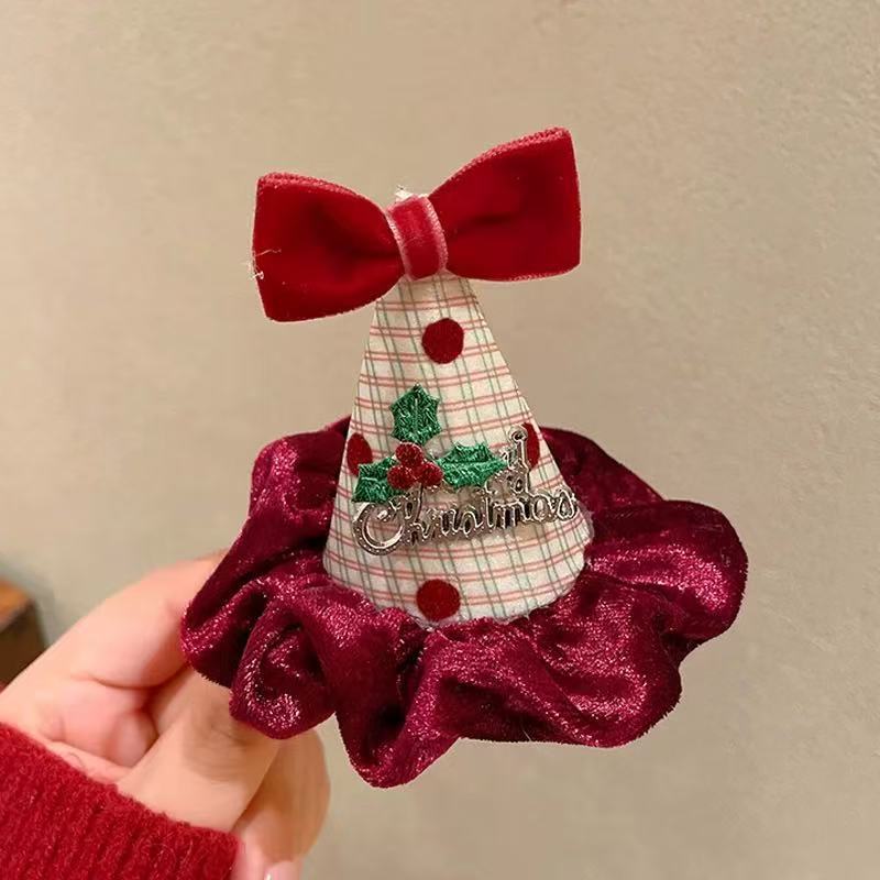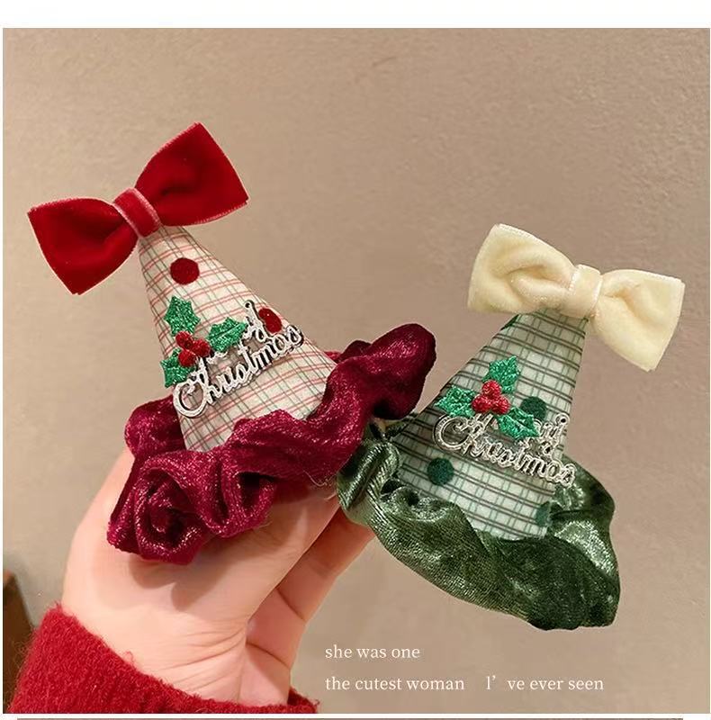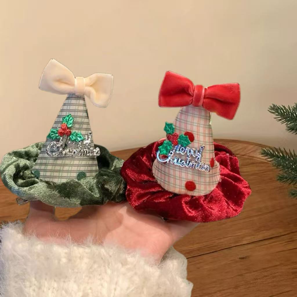 许愿生日圣诞节发夹拍照氛围蝴蝶结圣诞帽子可爱毛绒帽头饰发箍