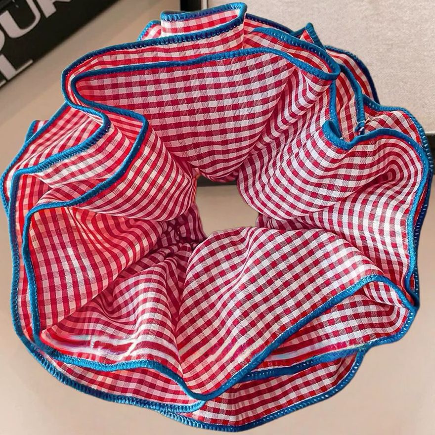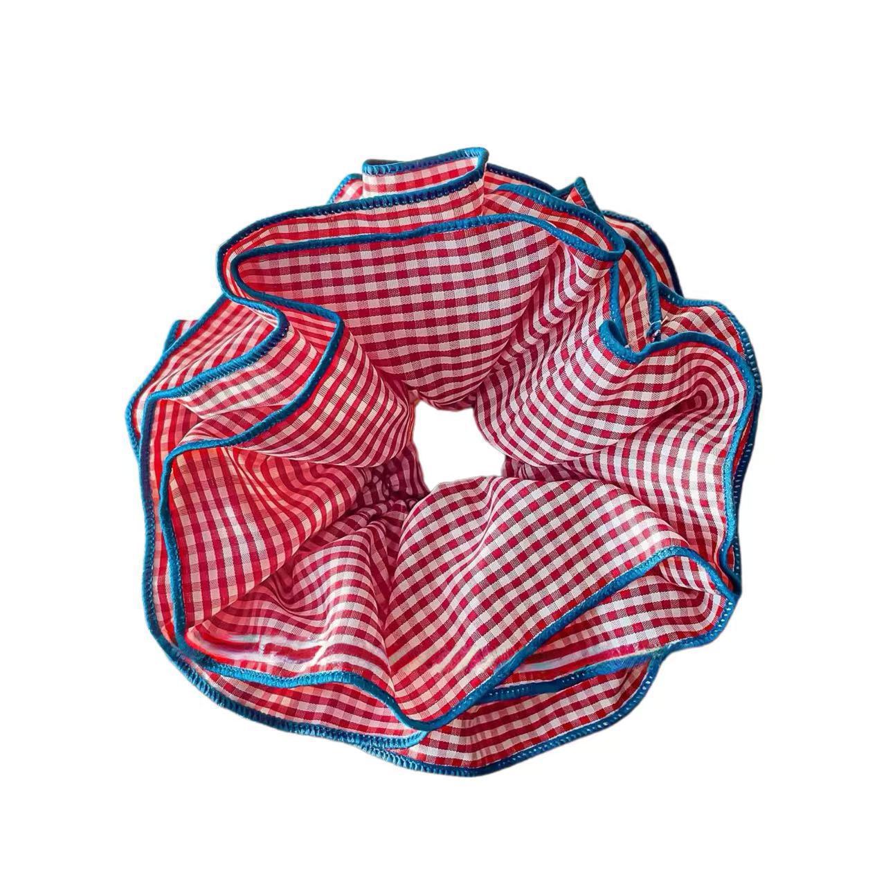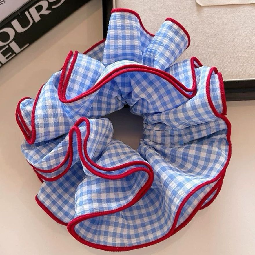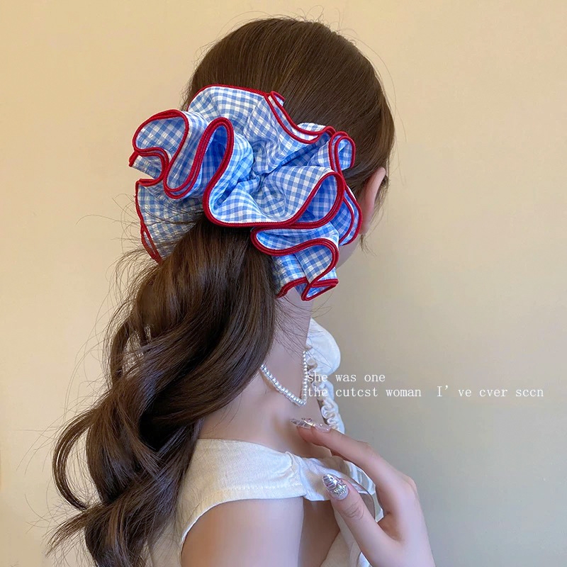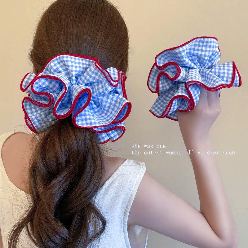 超大号韩系复古蓝色格子大肠发圈女高级感重工头绳扎头发超大发饰 English | 投诉