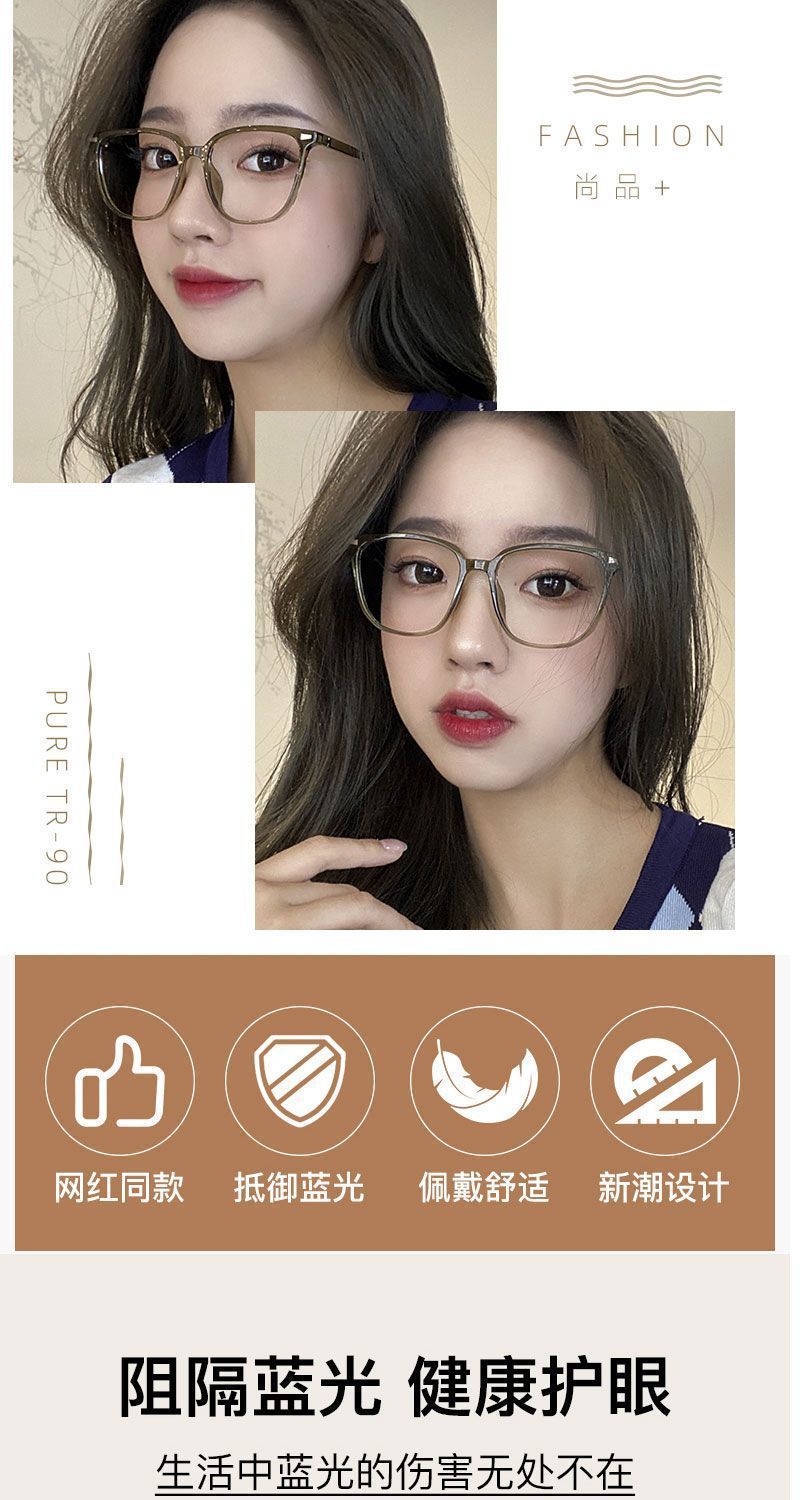 新款韩版韩潮男黑框防蓝光平光镜女大脸显瘦素颜全框架 投诉