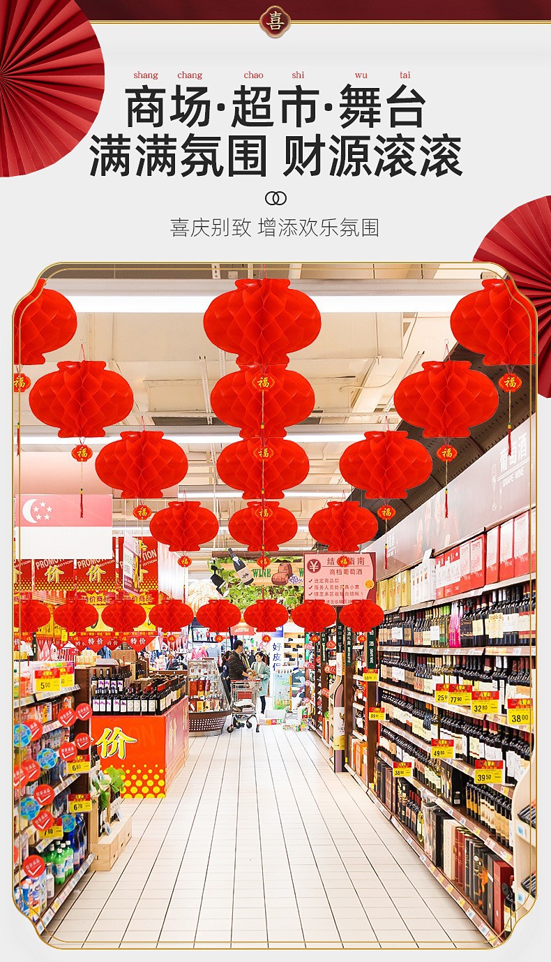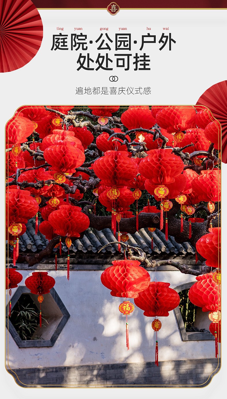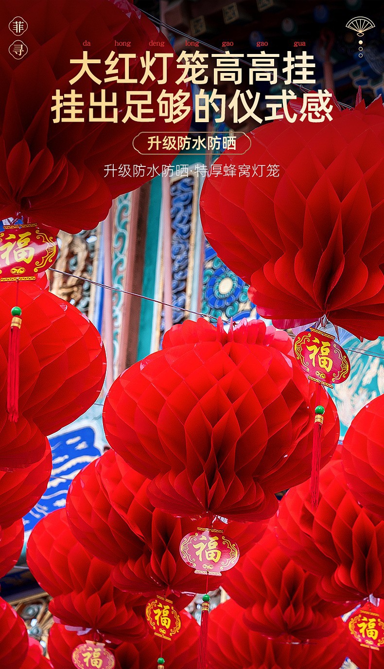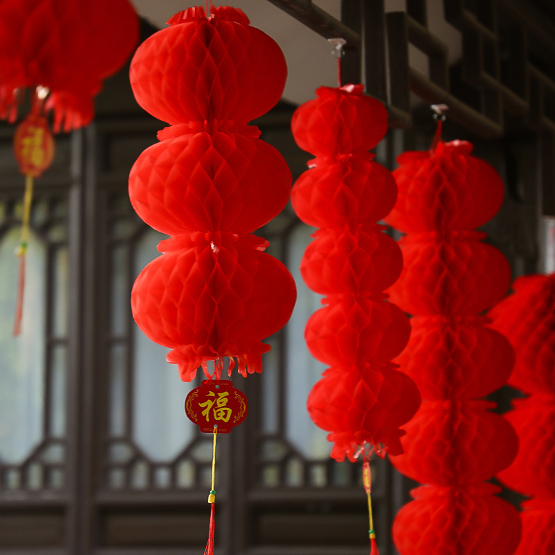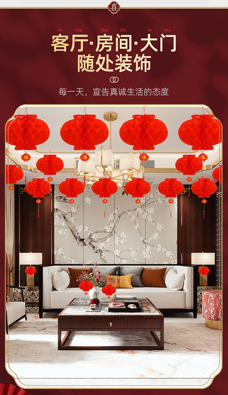 乔迁之喜装饰蜂窝球中秋灯笼挂饰国庆节喜庆装饰手工大红纸灯笼