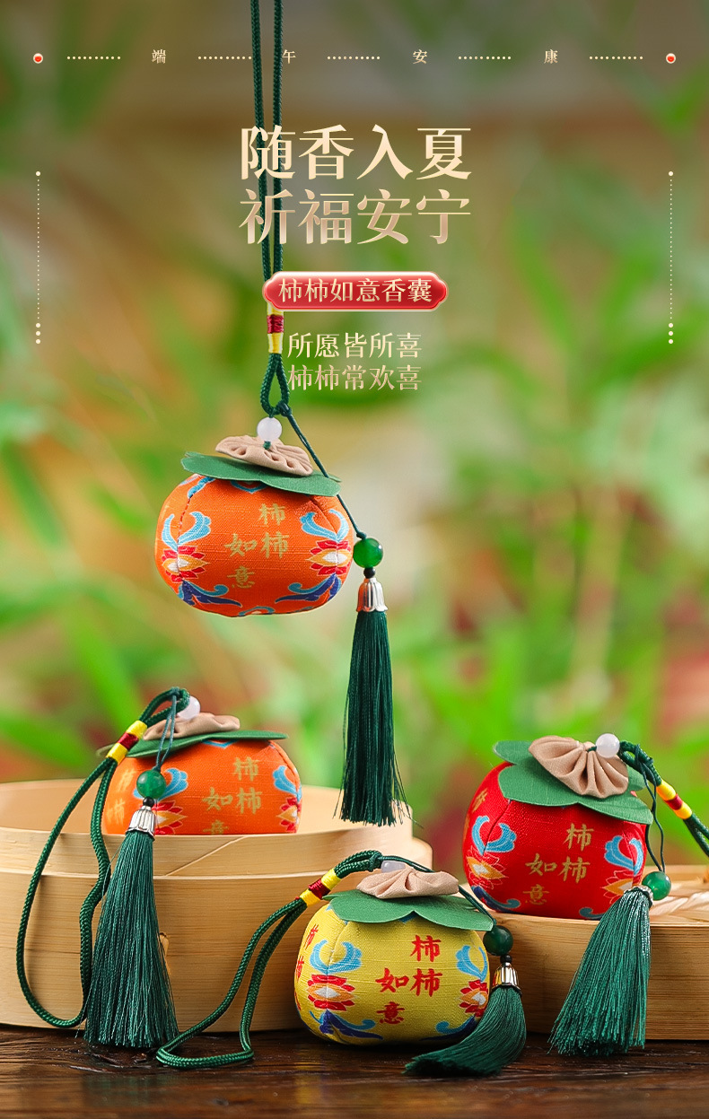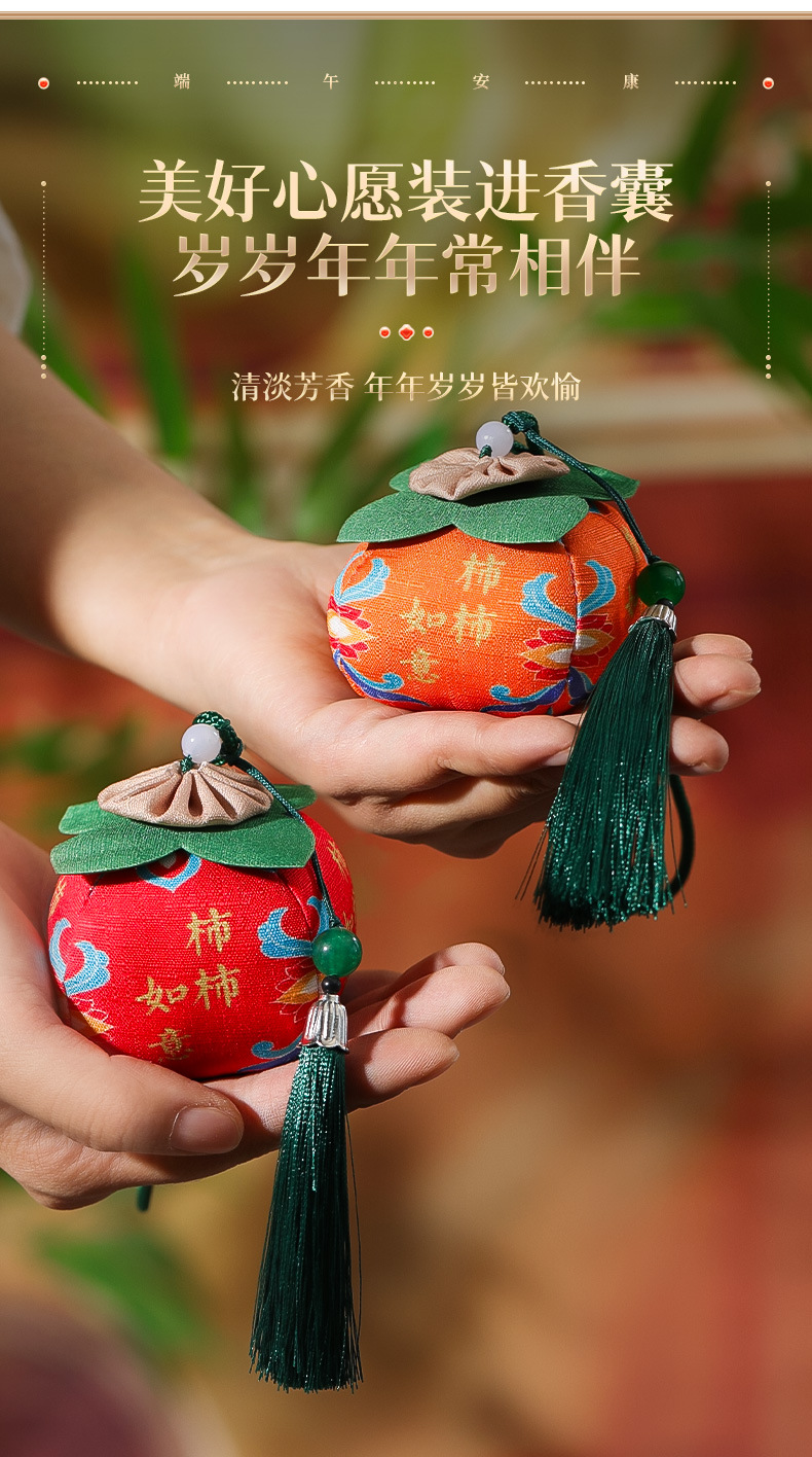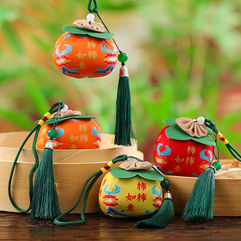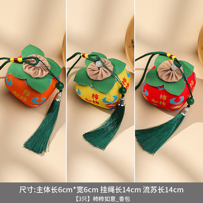 古风水果香包端午节福果柿子苹果香囊挂件民族风包挂车挂香端午节香包香囊祈福香囊柿柿如意柿子香包车载平安符手机挂饰手伴包批发