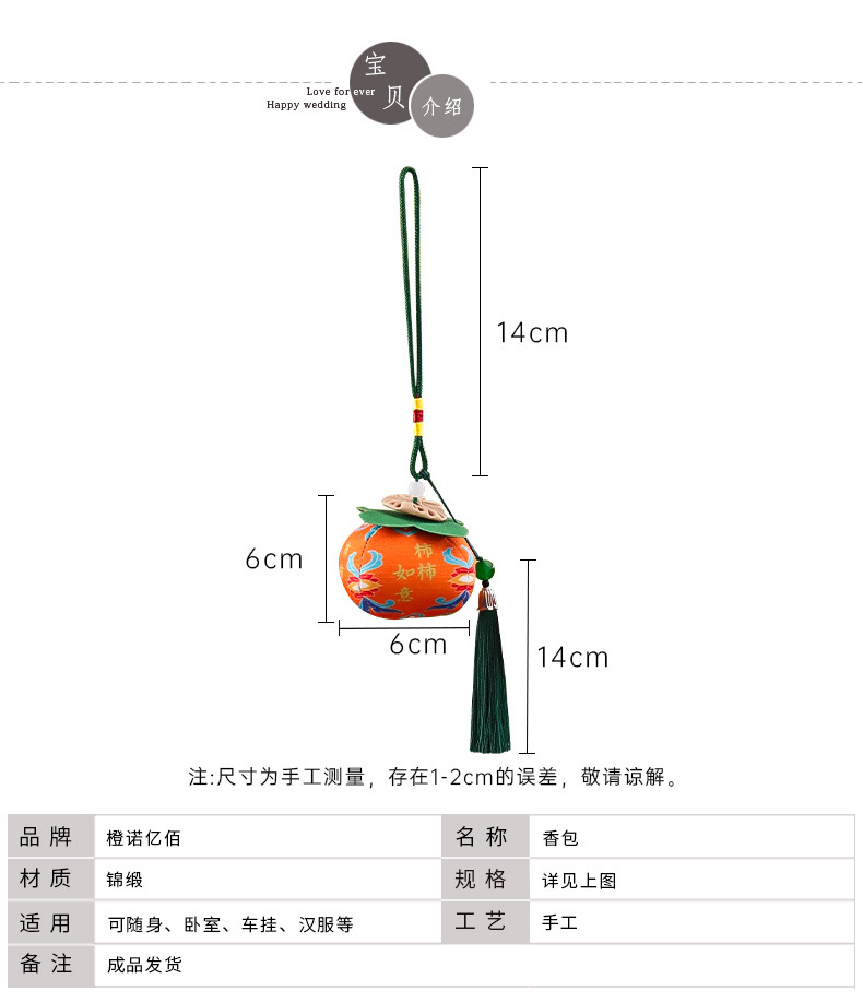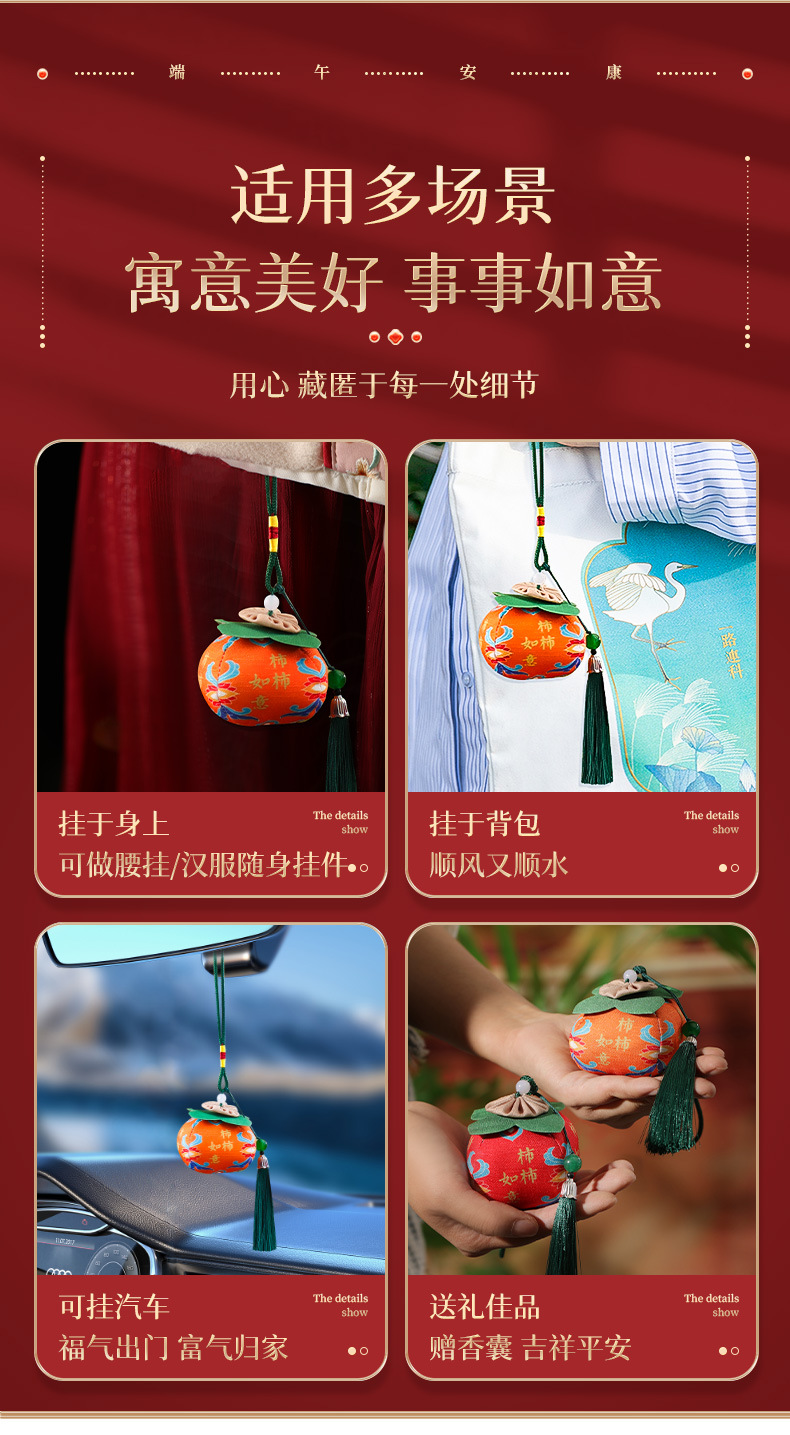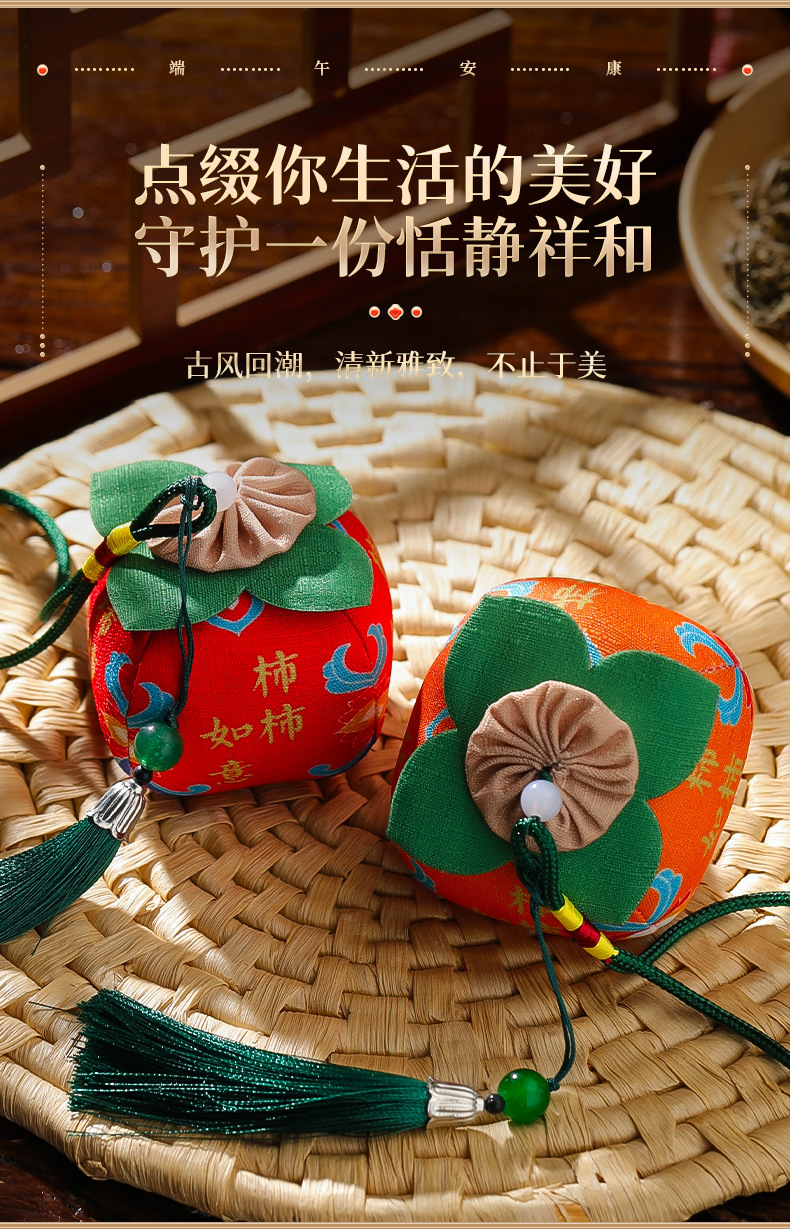 古风水果香包端午节福果柿子苹果香囊挂件民族风包挂车挂香端午节香包香囊祈福香囊柿柿如意柿子香包车载平安符手机挂饰手伴包批发