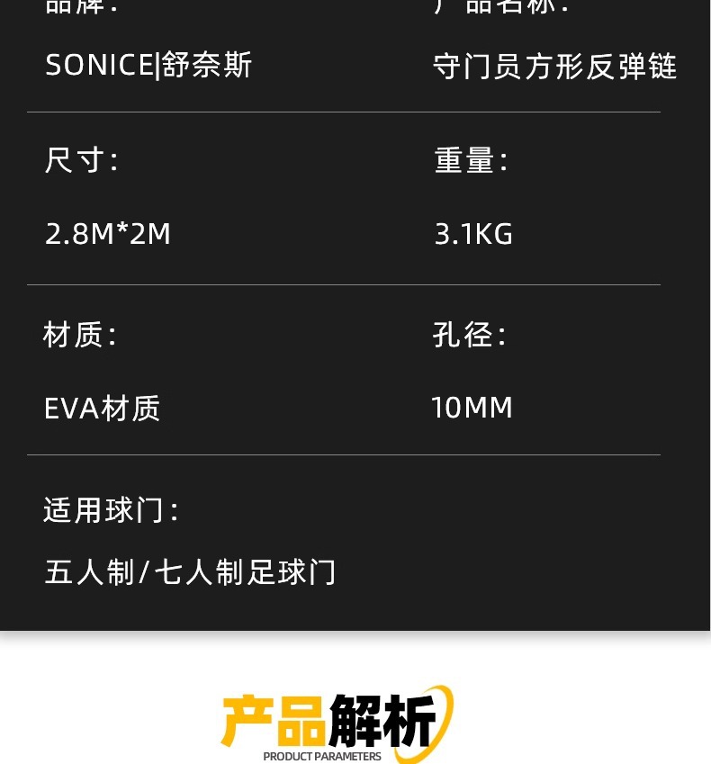 sku:2米*1.6米反弹链: 包装尺寸:50*40*40cm 重量:6kg
