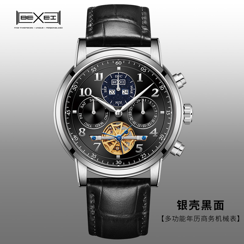 BEXEI/彼赛正品商务款镂空多功能全自动男士机械腕表男表夜光防水
