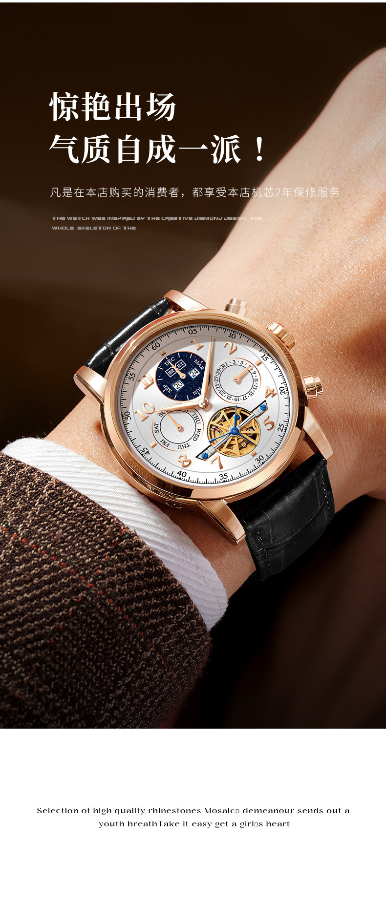 BEXEI/彼赛正品商务款镂空多功能全自动男士机械腕表男表夜光防水 English | 投诉
