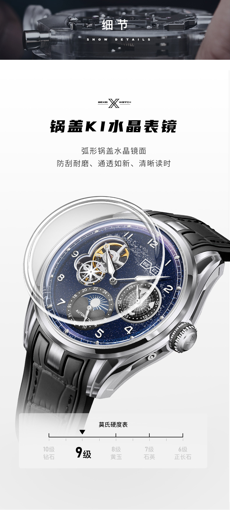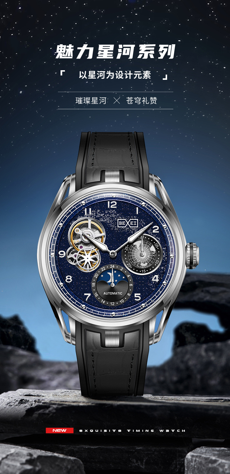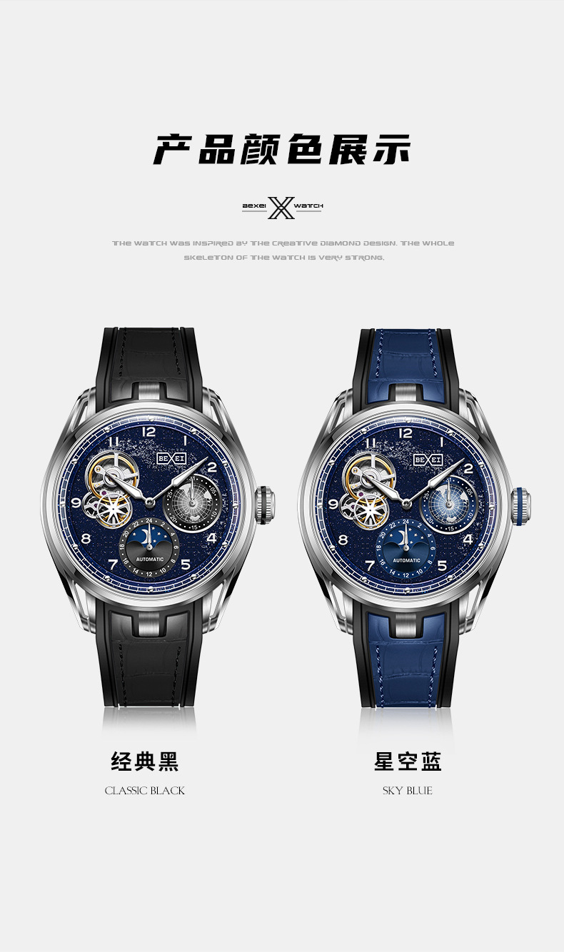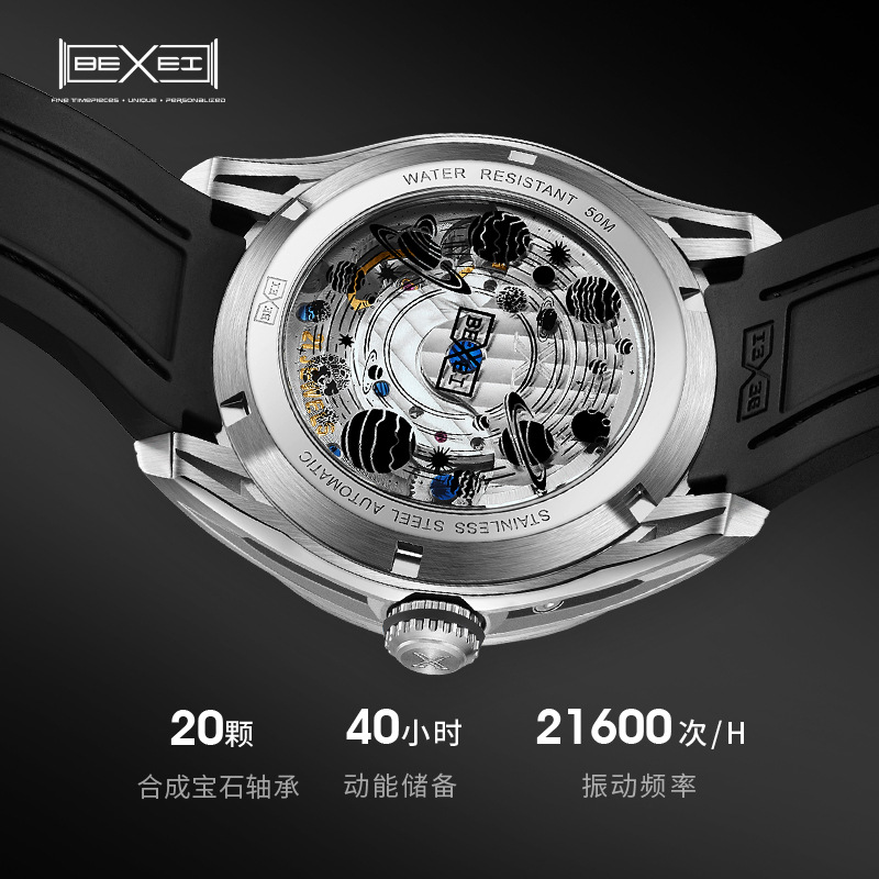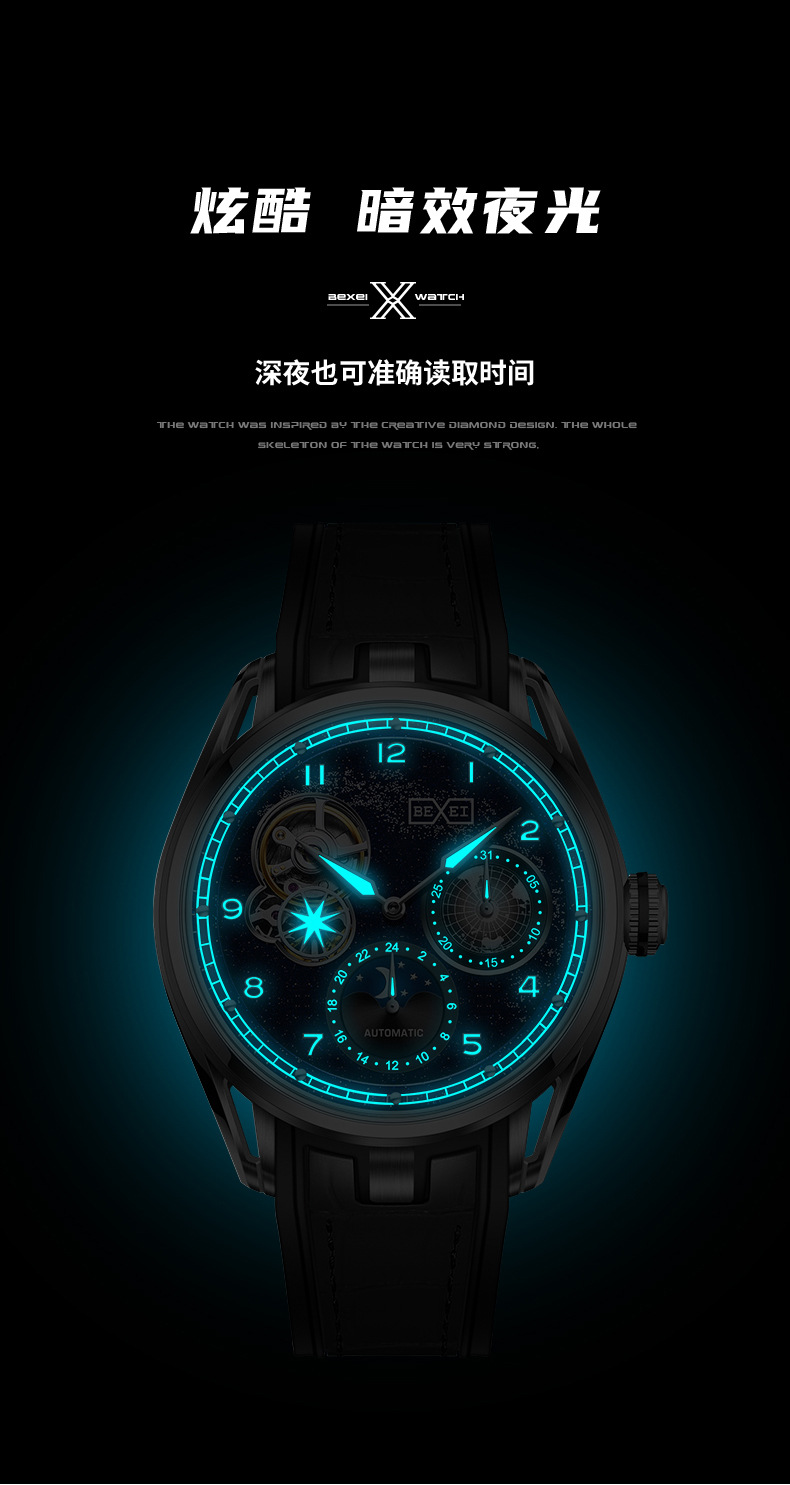 BEXEI/彼赛手表星空镂空男表多功能全自动机械表腕表高档帅气礼物 English | 投诉