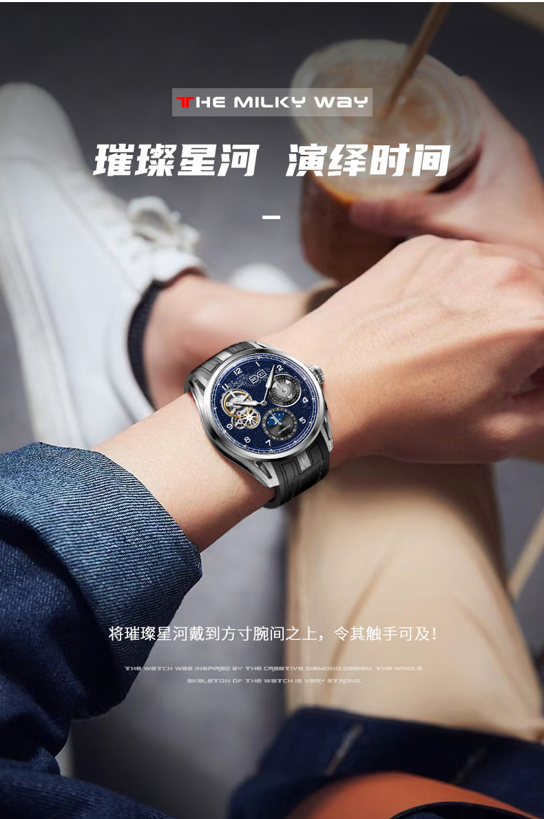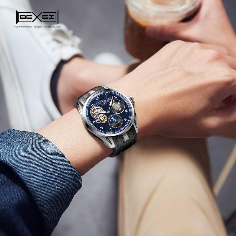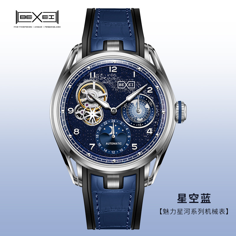 BEXEI/彼赛手表星空镂空男表多功能全自动机械表腕表高档帅气礼物