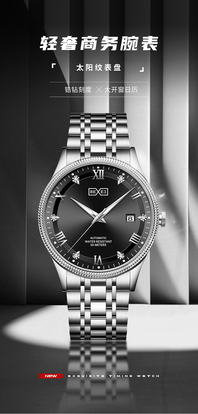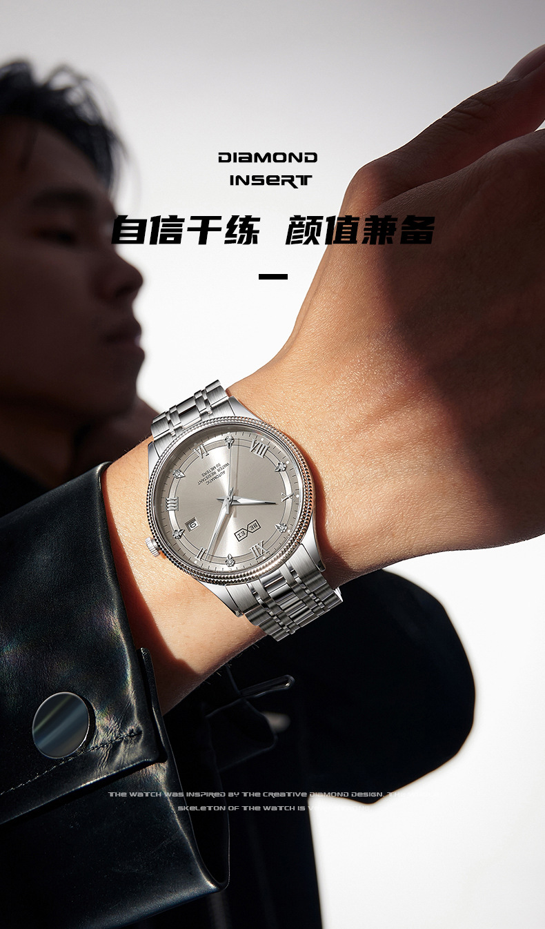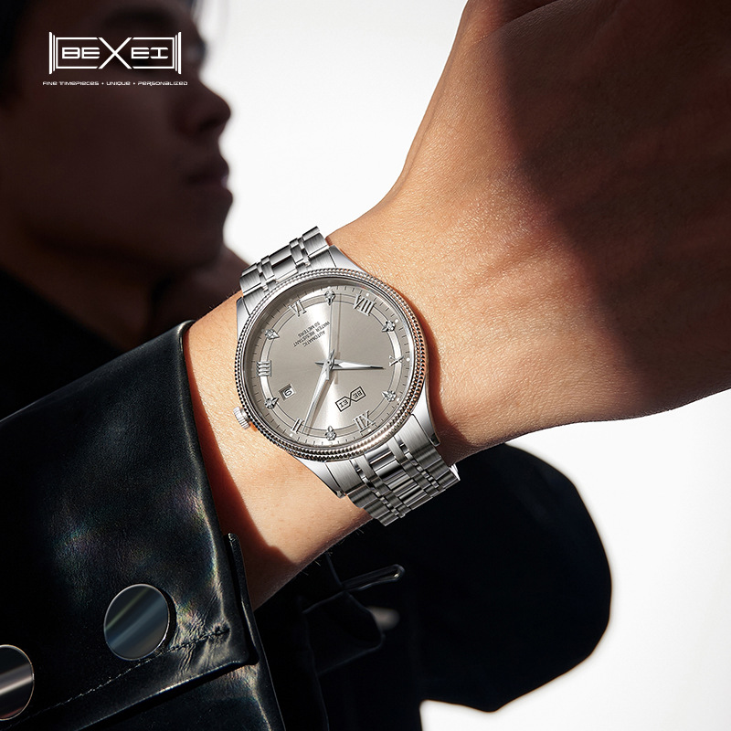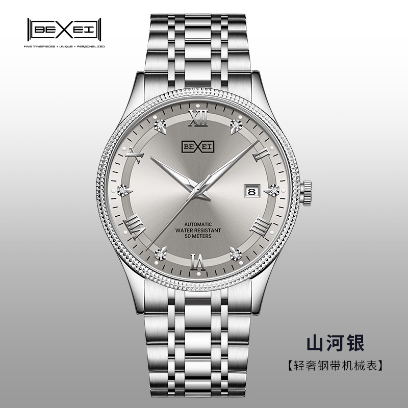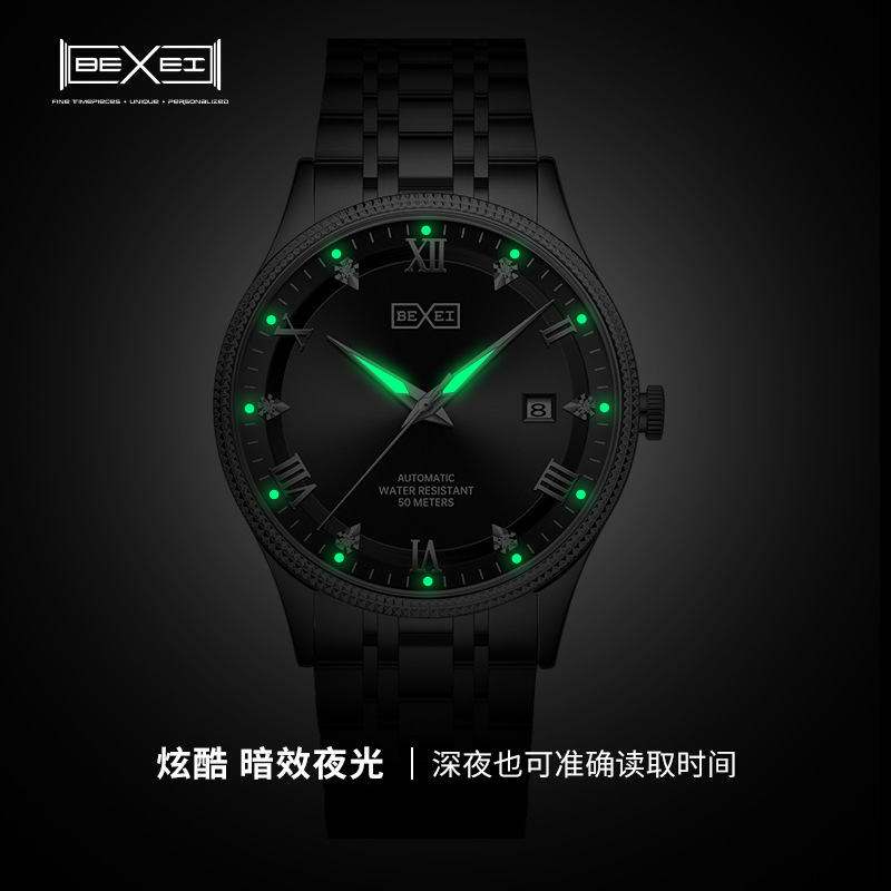 BEXEI/彼赛男表名匠系列罗马刻度日历夜光防水全自动男士机械腕表