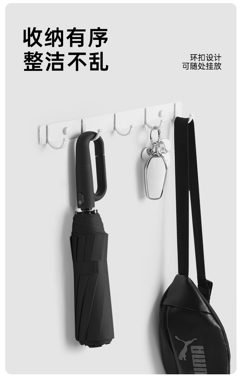 全自动高级感环扣晴雨伞抗风黑胶遮阳雨伞折叠挂钩男女便携遮阳伞