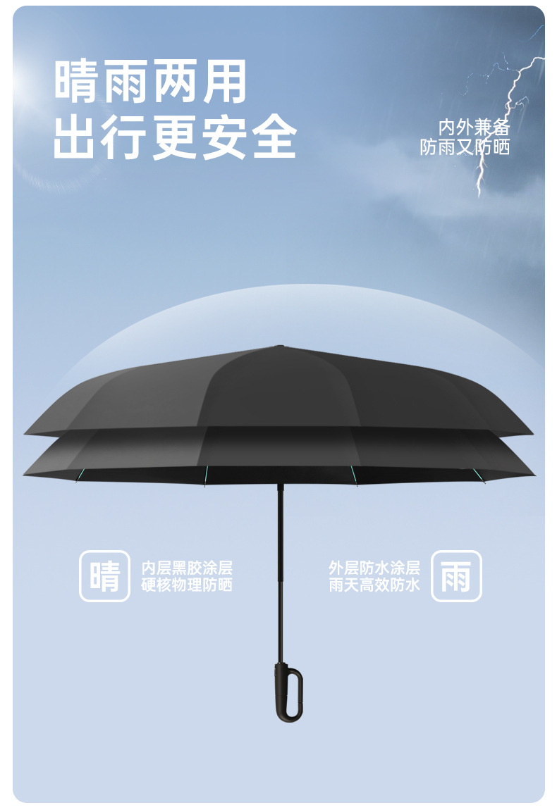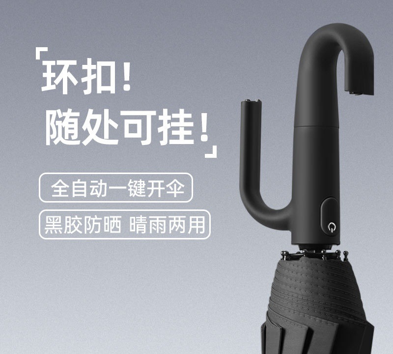 全自动高级感环扣晴雨伞抗风黑胶遮阳雨伞折叠挂钩男女便携遮阳伞 投诉