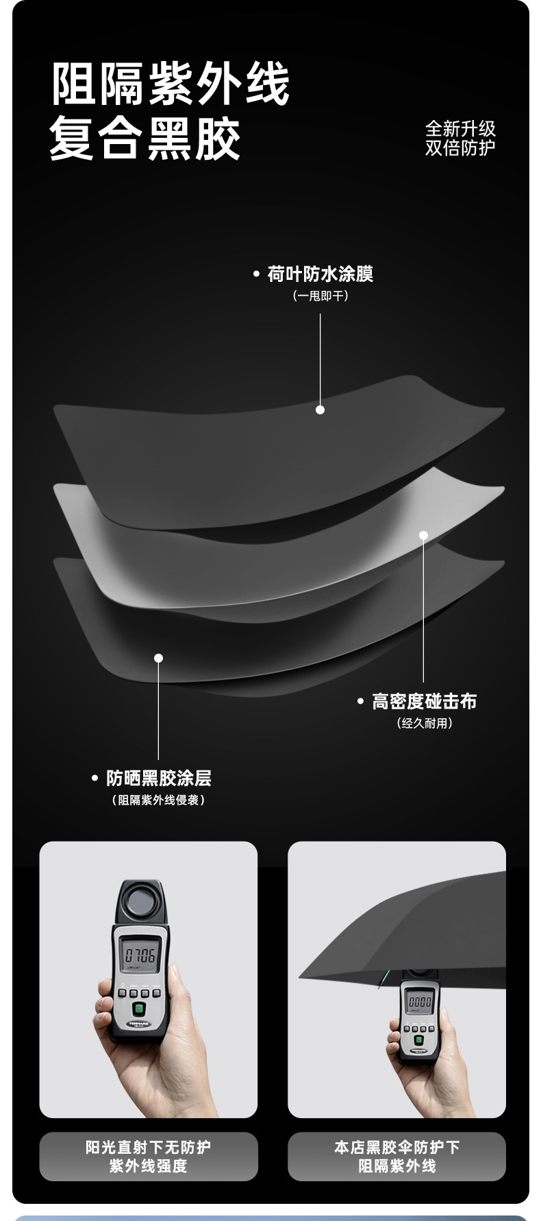 伞骨数量: 10骨 款式: 三折伞 伞布材质: 黑胶 伞骨材质: 铁 伞布过胶: 黑胶 中棒材质: 铁 收伞方式: 自动 风格: 休闲 重量: 0.431 kg/个