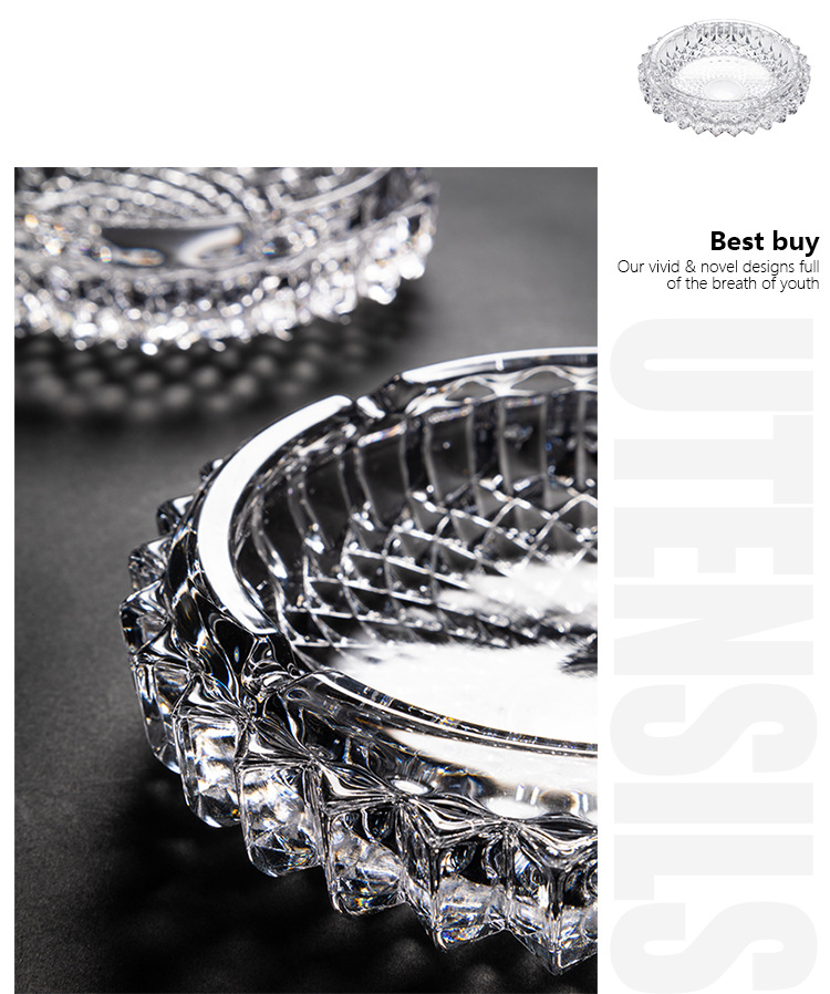 玻璃烟灰缸齿纹烟缸创意水晶欧式个性潮流多功能客厅办公室烟灰缸 English | 投诉