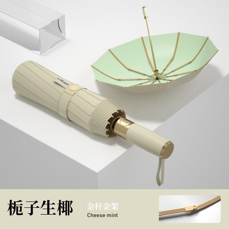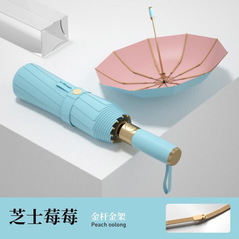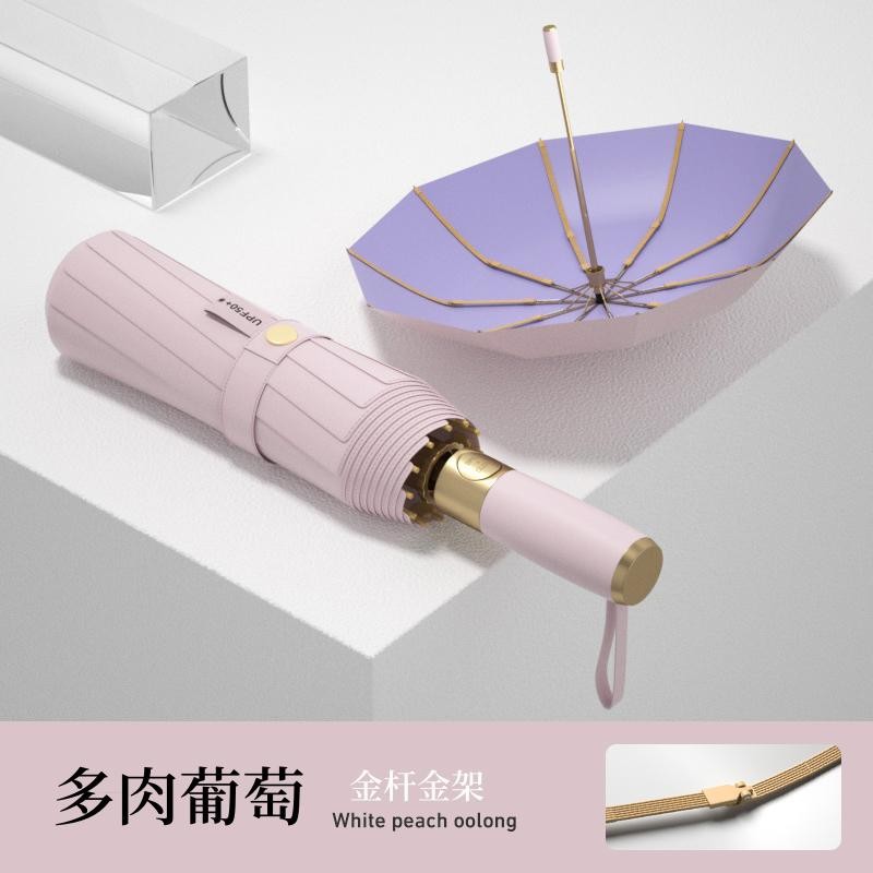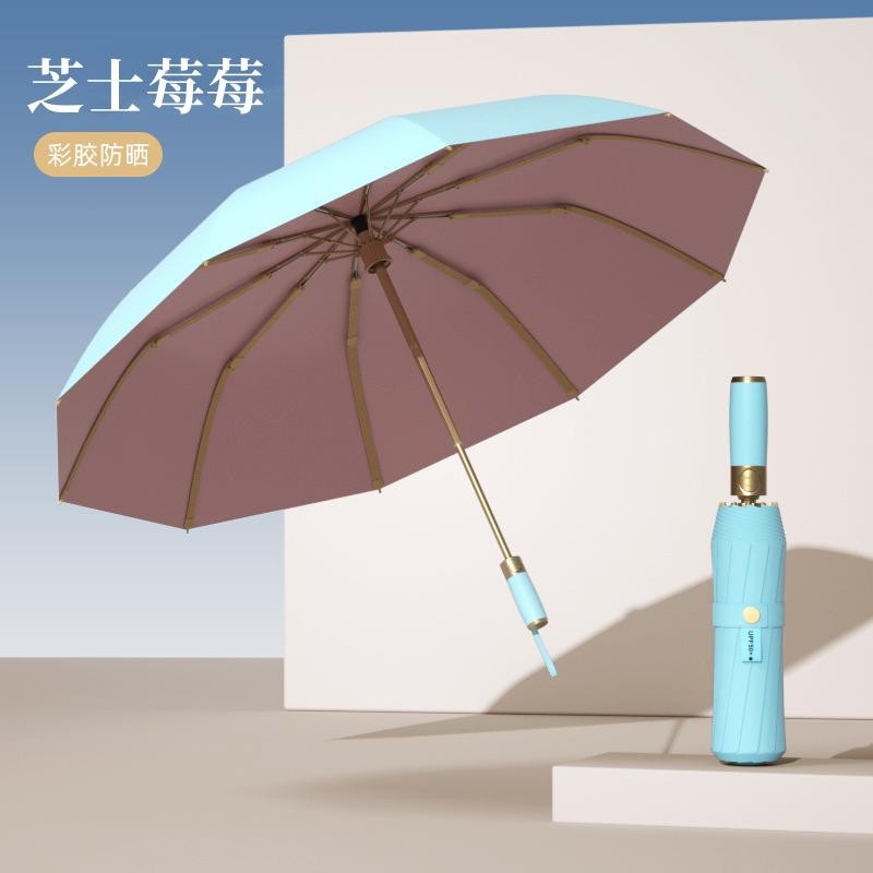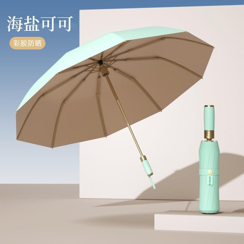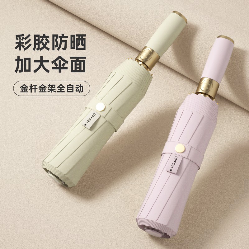 全自动十骨金杆彩胶雨伞遮阳防晒防紫外线太阳伞女士晴雨三折伞