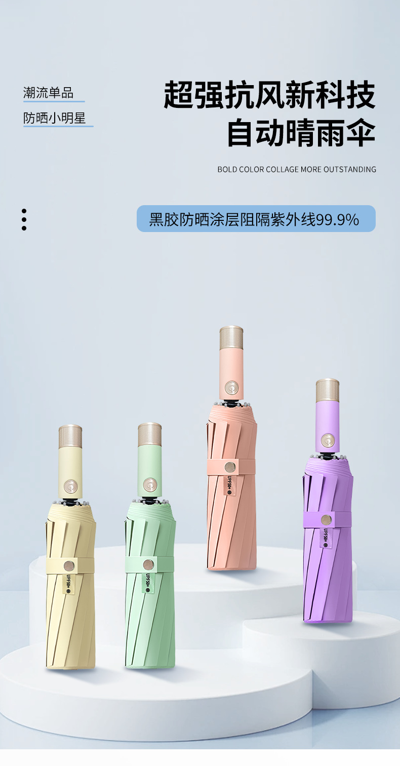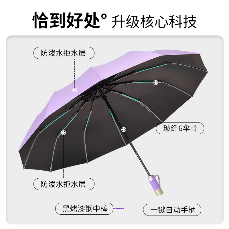 全自动新科技防风多股黑胶雨伞防晒防紫外线多色加大晴雨两用伞