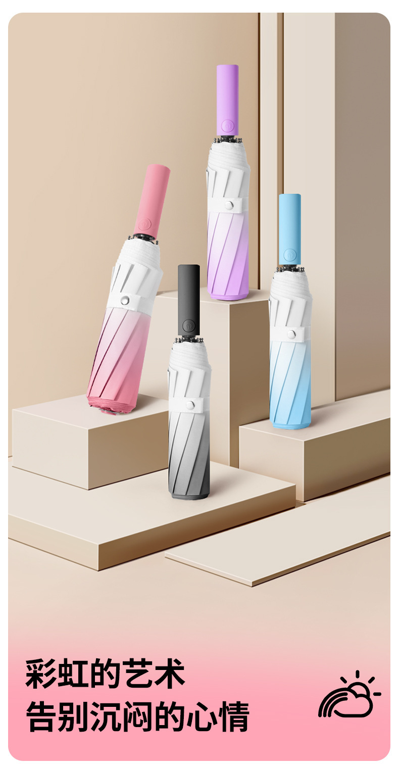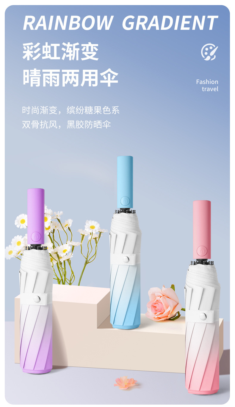全自动渐变折叠雨伞防晒遮阳太阳伞小清新礼品伞黑胶晴雨两用伞女