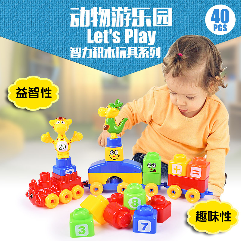 儿童大颗粒塑料积木玩具 益智拼装玩具积木动物游乐园大颗粒积木