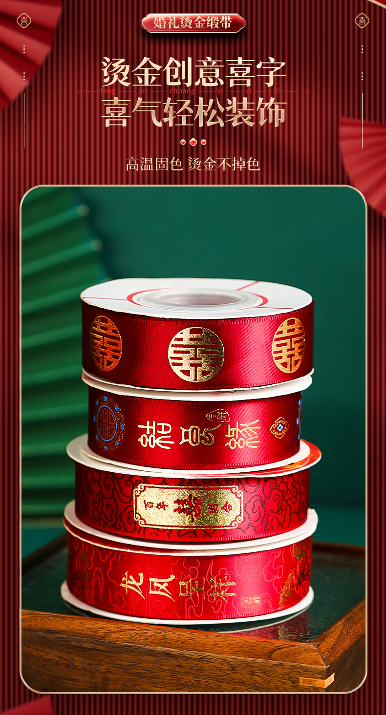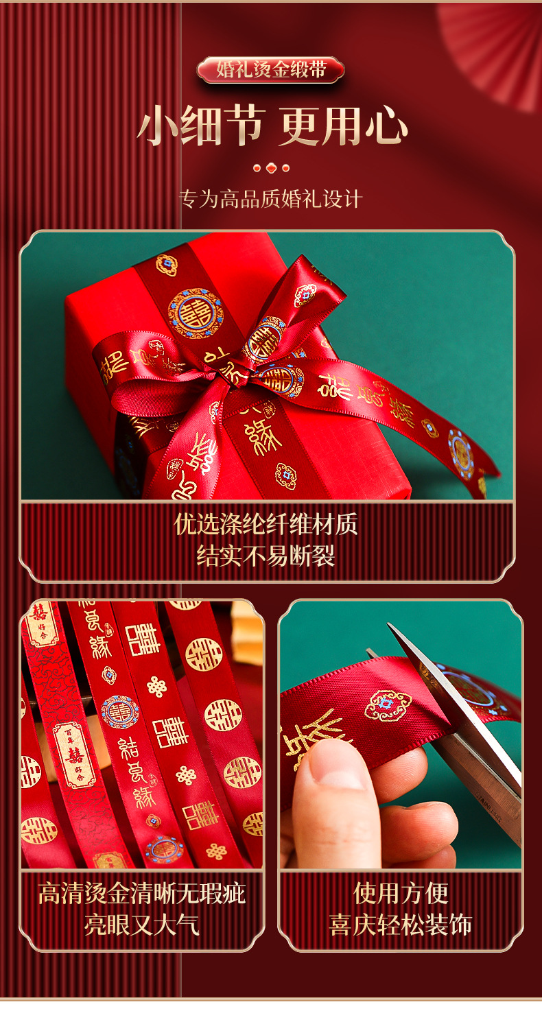 结婚丝带缎带女方婚礼喜字彩条拉花彩带嫁妆包装喜事婚庆用品大全