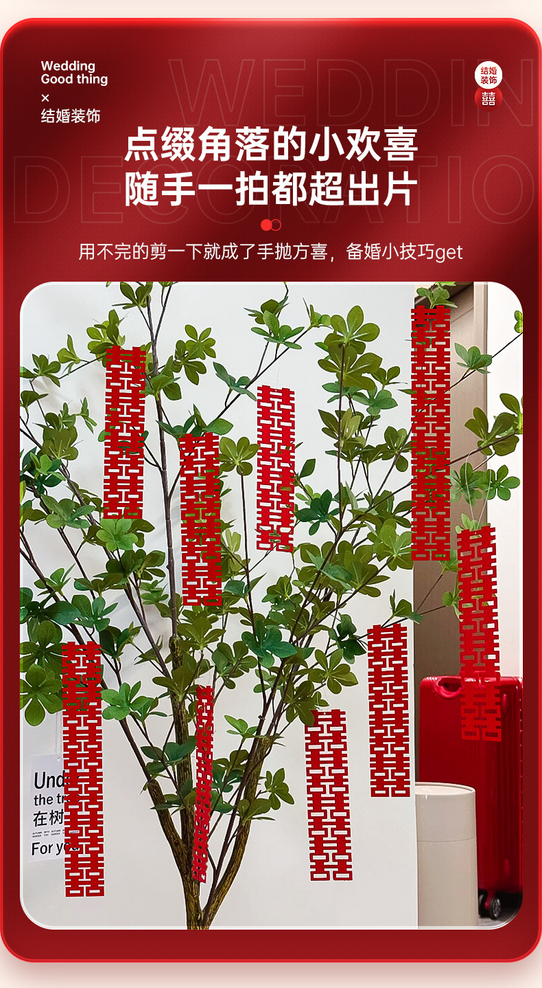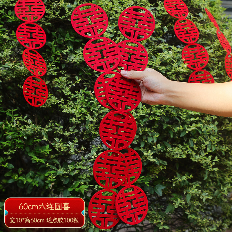 小红书同款玫红色小长条喜字毛毡无纺布婚房布置喜字贴盆栽挂件高级感新款长条喜字结婚房间装饰必备品立体喜字拍照摄影道具全套