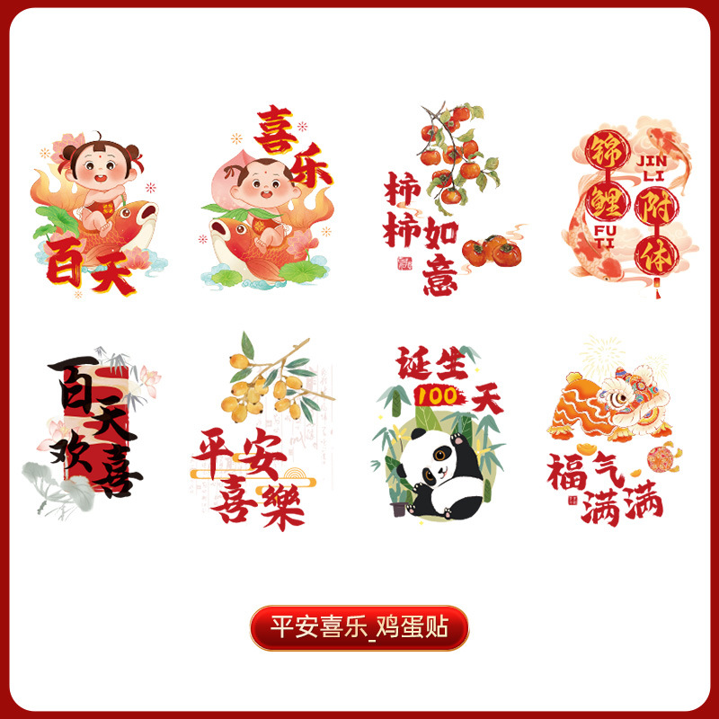 满月喜蛋贴周岁生日满月礼鸡蛋贴纸鸡蛋贴纸龙年宝宝新生诞喜贴纸
